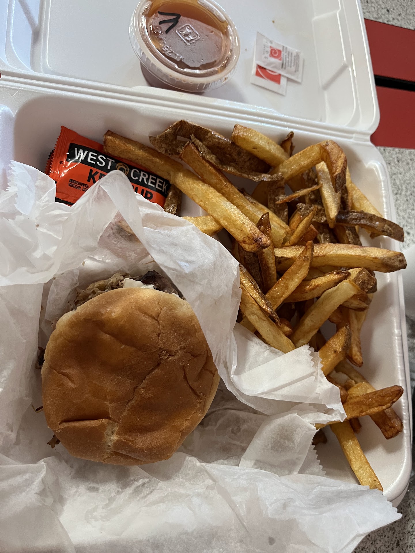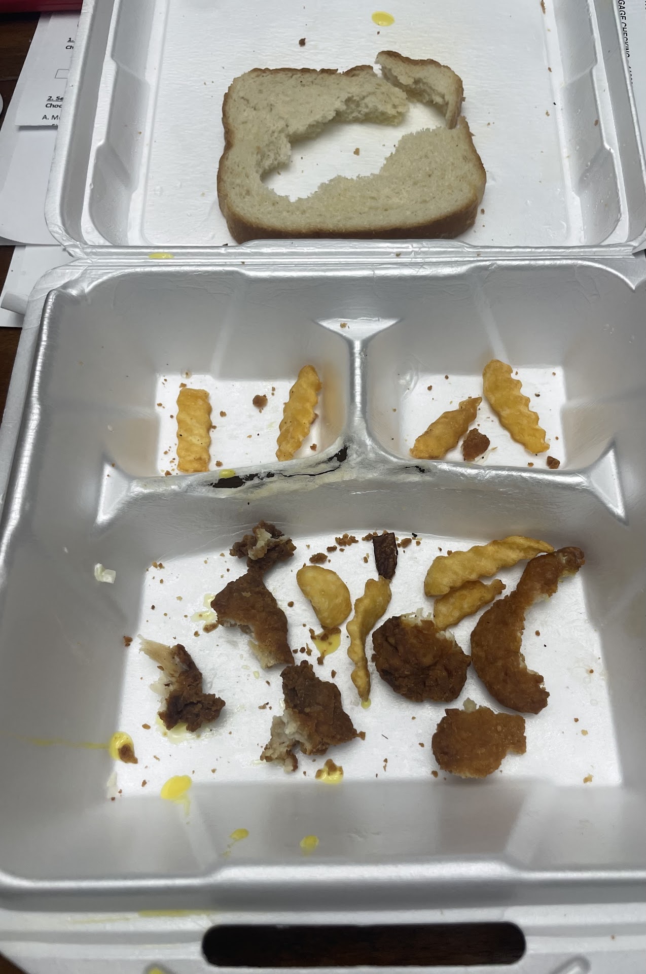 You can trust all these solicited 4-5 star reviews or you can be honest with yourself and realize that as a culture no one really wants to cook anymore, so we bite our tongues and overlook things we shouldn't. First off, I grew up in public housing plus I'm a fat boy so I can eat any thing but this was next level unacceptable. I phoned in an order here at around 1:15pm on 1/24/24 while sitting outside at the 5 points red-light in traffic. With bad weather moving in, I decided to order two dinners so I wouldn't have to get out again later. My order consisted of one chicken finger dinner and one hamburger steak dinner. I immediately noticed the menu prices online were not the same but I didn't say anything. At 1:50pm I came back inside to check on my order because I'd already paid but it still hadn't been brought out to my truck. I stood around for another ten minutes while the lady searched for honey mustard, ketchup, and H57 I'd requested when calling it in. When I finally get home I see my chicken fingers are burnt. I'm talking as dry and hard as an Alabama Highway in July. Ya boy ate 'em like a champ and shouted out my mama in Heaven knowing she'd be proud of me not forgetting where I came from. I was hungry and hadn't eaten since yesterday, plus knew I'd never order food here again. I only wish I had taken pics first. Anyways, I'm sharing a photo of what my entire order essentially looked like. If you zoom in you can even see where the chicken fingers were so burnt that they had melted the styrofoam plate. You cannot expect folks not to tell the truth if you send them home with food like this. I live out in the county and with storms moving in I wasn't driving back out there. Nor do I feel they deserved a phone call. What they did deserve is an honest Google review and here it is. By the way, they didn't toast my bread and also got my sides wrong on top of sending me home with one set of plasticware for two dinners after me asking multiple times for these said condiments. You can spend your money here if you like but KC's BBQ is only a few miles away and I have never been disappointed there. They are closed on Wednesdays or I would've went there to begin with. Either way, here's a photo of what's left of my burnt...