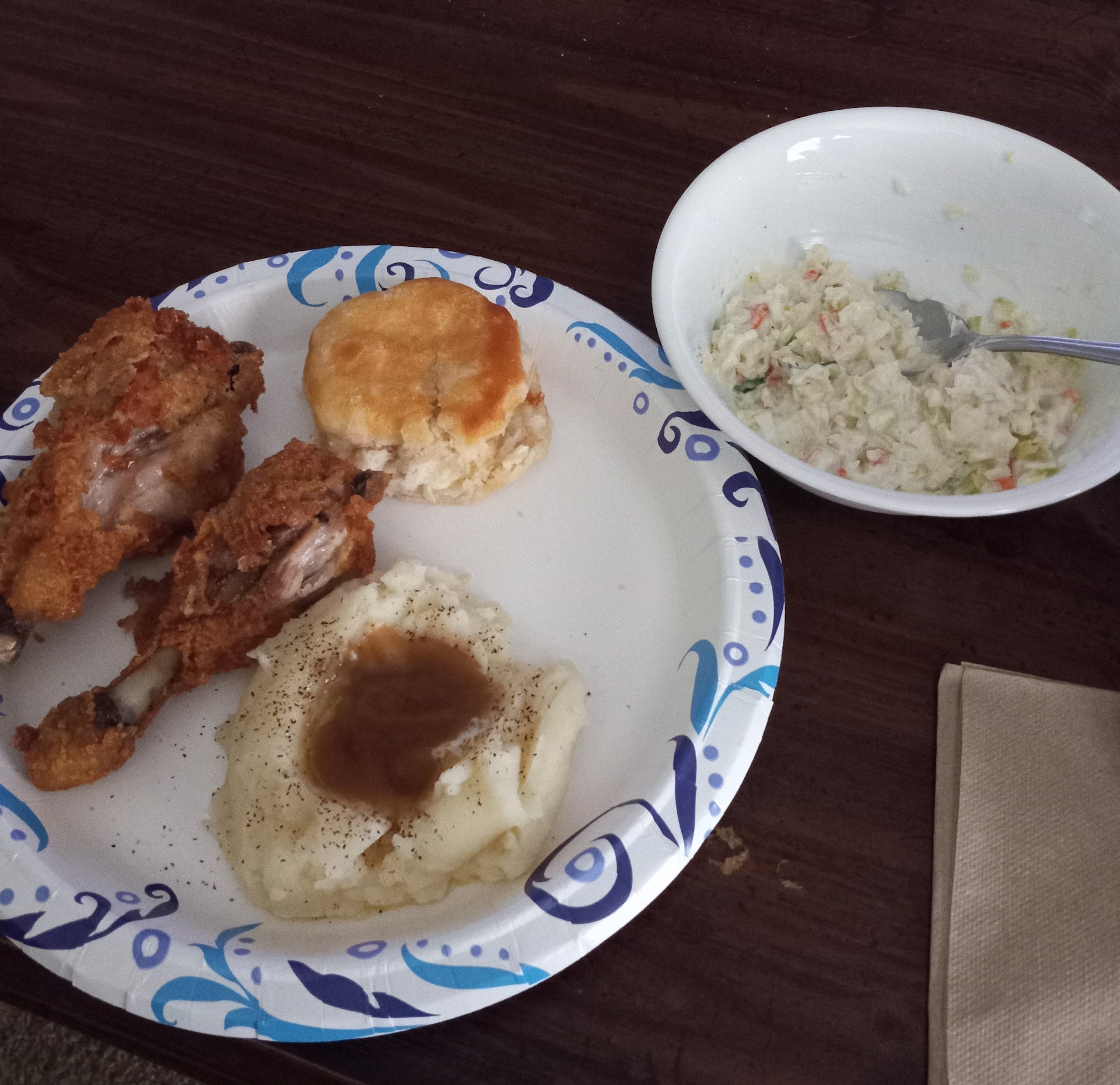 So let me just say this was the oddest experience at any fast food restaurant. When entering the store no employees were anywhere. I attempted to use the restroom to wash my hands before we ordered and both men and women were locked so I moved back to the lobby and waited for someone to ring us up. You can see the restroom doors while in the lobby so noticed two employees a male and a female both come out of the same women's restroom (the female greeted us and took our order) and in about 5 min a male employee comes out of the men's. So attempt to order a chicken pot pie and am told they have none made and are sold out for the day with more than an hour until closing. Note: while dining in three other potential customers walk in wanting chicken pot pie and are told the same thing. They left which I should have as well but was starving and not having a lot of options at night. Okay so ended up ordering a meal with lemon cake for dessert instead. The chicken was old and lukewarm, the sides were fresh and hot and the sweet tea was so old I spit it out and swapped it for soda and I don't drink soft drinks. Will not be visiting this...