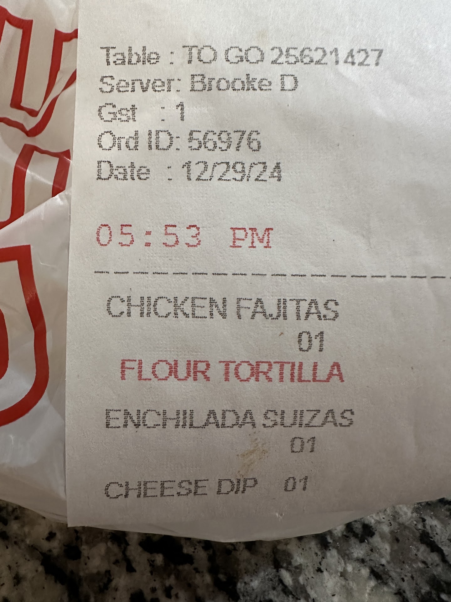 My grandmother, my mother, and I came here to eat lunch and spend some time together, everything was great, HOWEVER. Our waitress was quite rude and did not listen well, at all. We had told her three times we would like some queso dip, she finally got it to us the third time. My mother also ordered a meal and asked for it to be given to her at checkout as she was taking it home to my brother, it was given to her at the beginning of our meal instead. She also brought out the receipt and literally tossed it onto the table, not even in one of those folders like everyone elseās. It was like she was trying to get rid of us. When we asked for our to-go boxes, drink cups, and sauce containers she did bring the boxes, but she didnāt bring the sauce containers or drink cups and I had to ask a different waitress. While we were waiting on another order to be made, she also walked by and literally said something into my mothers ear and it didnāt seem too friendly but we were not able to even hear what she said, so I do not know. This was the worst service Iāve ever experienced in my whole life. You should never treat your customers this way. Oh! And she...