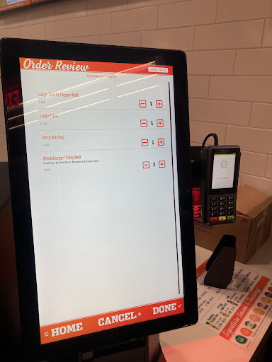 Read moreUNACCEPTABLE . My boyfriend and I decided we wanted Whataburger for late dinner. There was no one at the front register so we chose the self service kiosk as our way of ordering. This was our first experience with ordering through the kiosk. The kiosk offered lots of options, with detailed information on the items provided for dinner. My boyfriend scanned his free Patty Melt and the screen updated the pricing to account for the discount. In order for the discount to be applied we did order a Large Fry and a Large Dr Pepper shake. Although the screen did update to the new discounted price of 8 dollars, as I was paying two with my card the system froze. It then charged the full amount of 16.91 with an approved symbol and the non discounted items shown on the kiosk. There was no receipt printed, I let the night shift manager Ms Brandy know I didn’t receive a receipt and that my card did get charged a pending 16.91 now approved as of Feb 26 2024. She was not helpful, told me infact that she doesn’t know how the system works or understands how the kiosk works and can’t do anything for me. She did reassure me to contact my bank, which is unacceptable because a manager should be helpful and willing to deal with any situation when it comes to a guest that has paid for food that they didn’t receive and didn’t show up on the screen on their end in BOH. Obviously, emailing about 16.91 is beneath me, but this interaction of intolerance due to unwilling management has struck me cold. I also had to repay for my food at the counter finally with an inexperienced employee for a correct transaction of 8.26 a few moments after the incorrect approved transaction of 16.91 was ordered at kiosk. Although the unexperienced employee was more than likely poorly trained, she was very helpful and polite. The transaction at the front counter, did yield a correct and hot meal, that was clean and neat. The management on the other hand, Ms. brandy did not meet expectations for a...