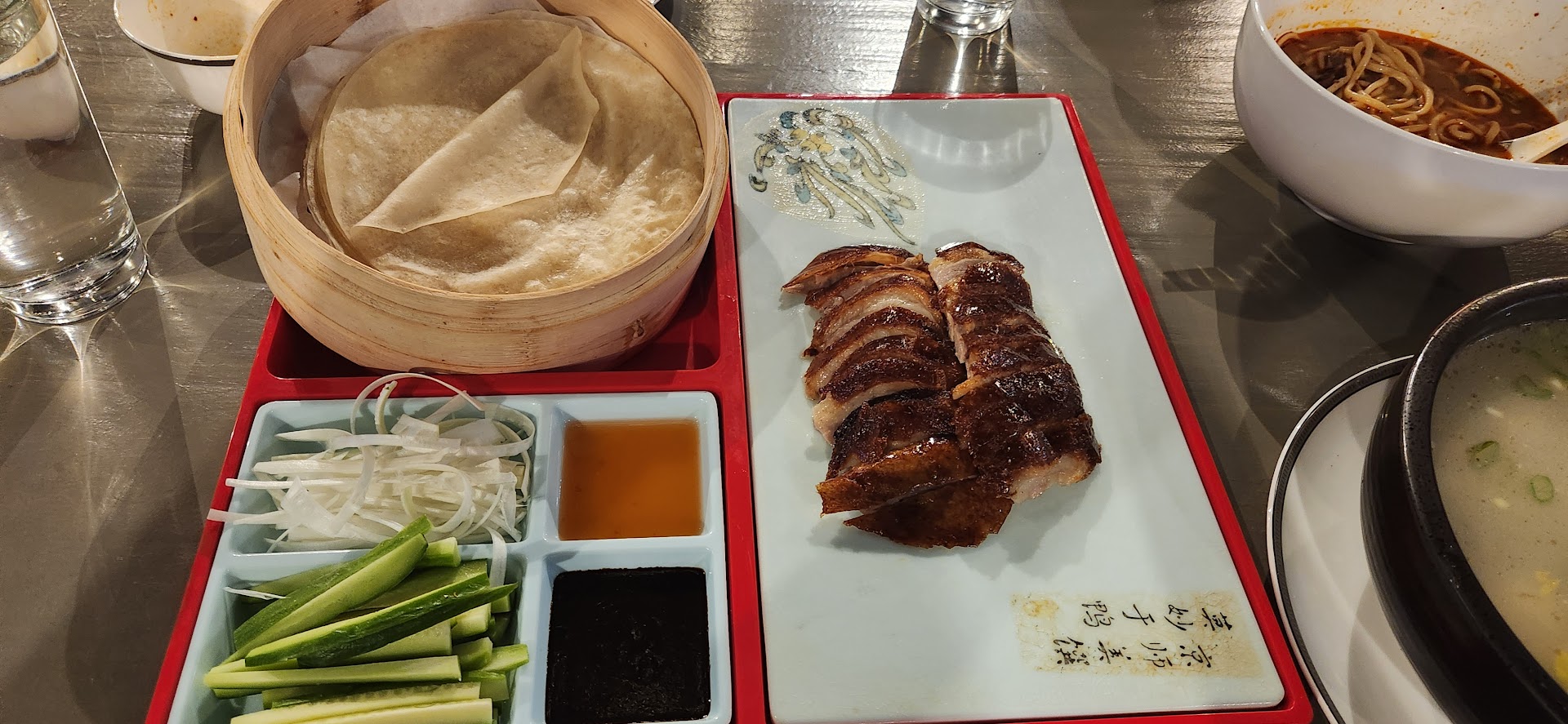 We ordered: Half Peking Duck + Soup option Spicy Beef Noodle Soup Xiao Long Bao (Soup Dumplings)