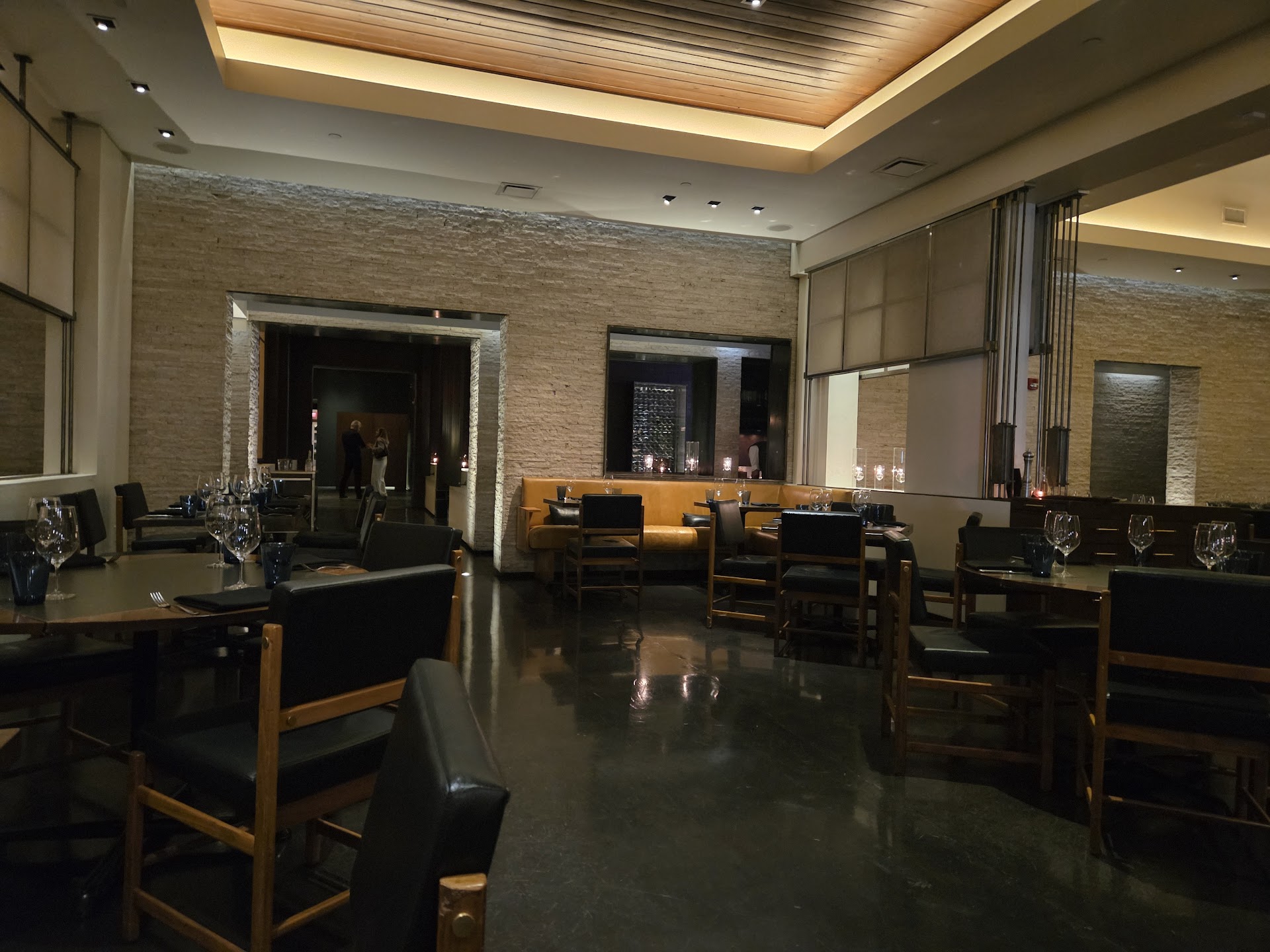 The atmosphere is a mix of modern and contemporary layout, but with class and style. This isn't far from your RH Modern catalogue but again absolutely practical. High ceilings. Large windows. Perfect lighting for a date night or business meal. Yet, not too quiet to make you want to whisper. It's not overdone. It's not pretentious. Love the small passage into the restaurant welcome desk from the Fairmont lobby.