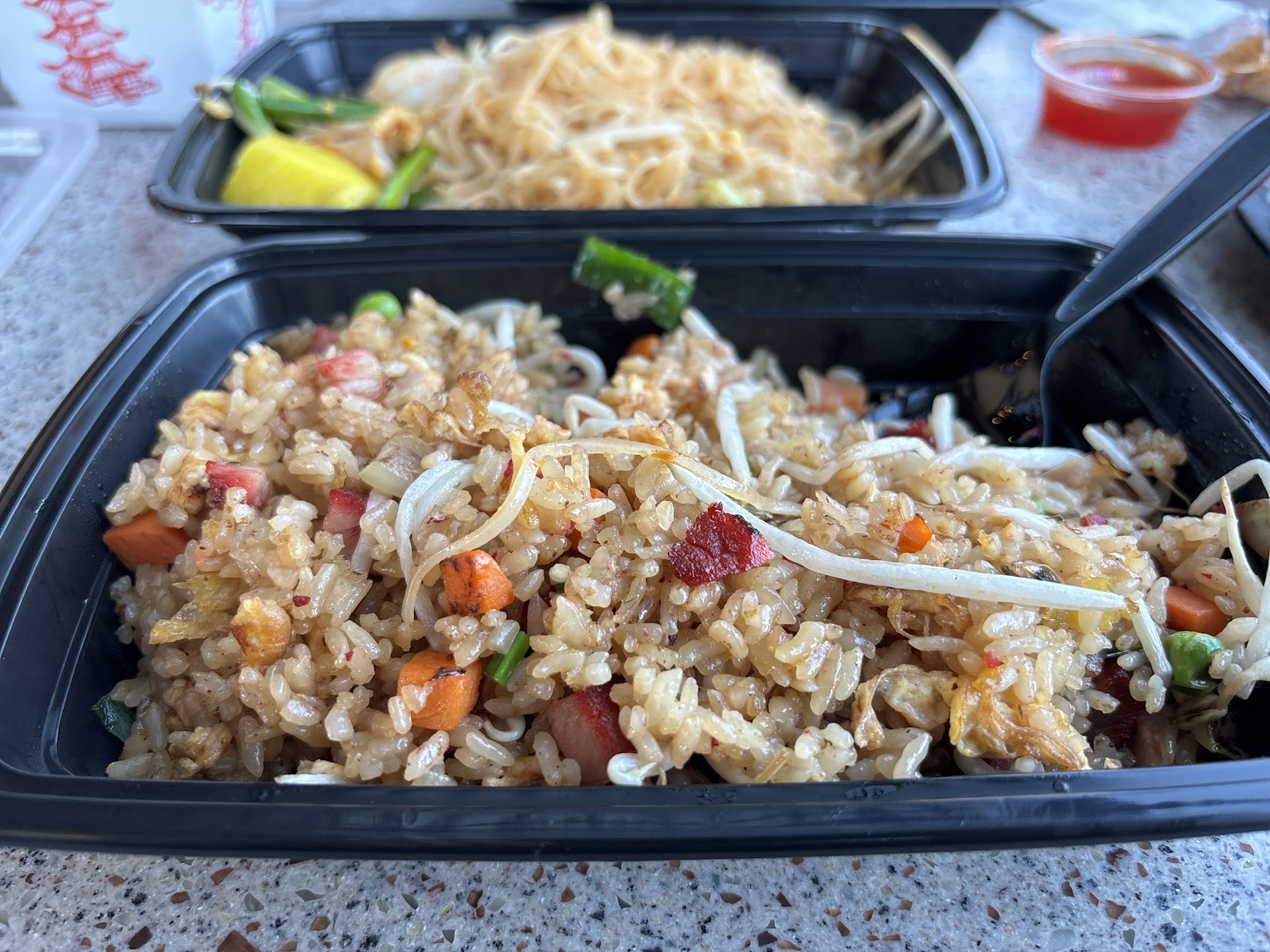 Read moreI ordered pad ga prow and thai basil fried rice and felt that this is a very americanized version of Thai food. The rice in both the dishes was overcooked and perhaps not the best quality. Only low quality sticky rice cooks into a mush instead of cooking nicely into sticky rice form. Also rice cooked in oven instead of rice cooker or pots with water can leave some texture of the rice. Anyway, the fried rice had burnt bits of overcooked eggs and chicken. So basically the proteins tasted overcooked. The carrots were out of shape and hence had an almost burnt texture too. Basil leaves were not picked well so were in big chunks. Felt like a cow with a mouthful of greens. And I think it was Italian basil and not Thai basil or ga prow basil or maybe not infused well in the dish. The overcooked rice also made the whole dish taste a little off. The chicken pad ga prow also had very chewy chicken breast pieces. The chicken had excess salt in it whereas the sauce was sweet. And I had ordered for thai style hotness. But got a sweet dish. Barely had any hint of garlic in it. Would suggest addition of mushrooms to evaluate the dish and give the dish a nice balance of flavours. Again the rice in the combo was overcooked. So it made the whole dish taste worst. Did not find a single bamboo shoot in the dish though the description mentions it. And again the same problem with the picking of basil leaves was felt. Attaching close up photos...
