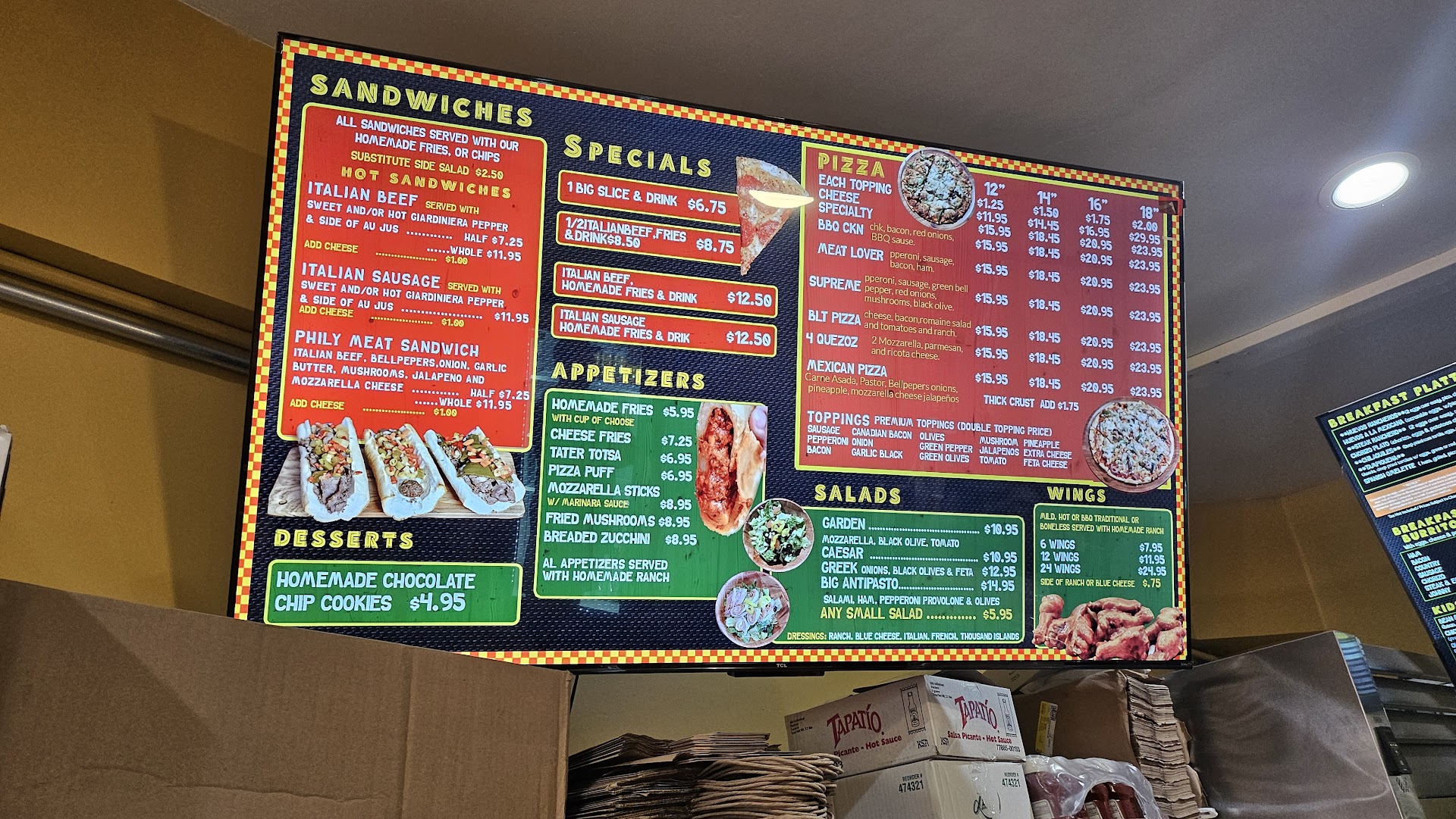 Read moreI usually read the good and bad reviews on a place. Gives me a better idea of what’s going on. The good reviews seem written by family and friends of the owner or by people who don’t know good food, customer service or value. Last night I spent $62 including tip for two 16” pizzas. One vegetable and one 3-meat. The ingredients, which I paid individually for, on both pizzas were so sparse, it was like a joke, on me. In addition to the soggy thin crust, the round pizzas were sliced in squares. Half the squares had no ingredient or maybe a little speck of something. When I went to the shop today with several left over slices of both pizzas, asking where’s the ingredients, they pointed out the little bits of stuff, acting as though I was nuts. And said I was the first person ever to complain. I see several complaints on this feed about the same things. Sparse ingredients, soggy crust and poor customer service. After arguing my point with the owner and some hideous woman, they begrudgingly gave me a credit. And honestly, it’s not about the money, I happily pay for quality, but I will never use the “credit”. I’ve got no appetite for this dirty...