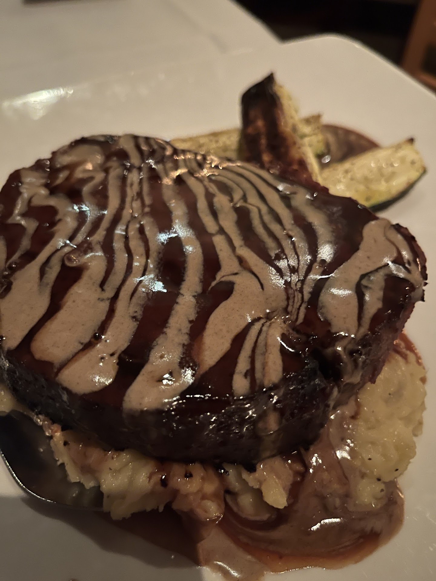 I had the short ribs with pureed parsnips and greens. The short ribs fell off the bone and had really good flavor. The cherry bbq sauce that came with them was to die for. The sides balanced out the meal perfectly.