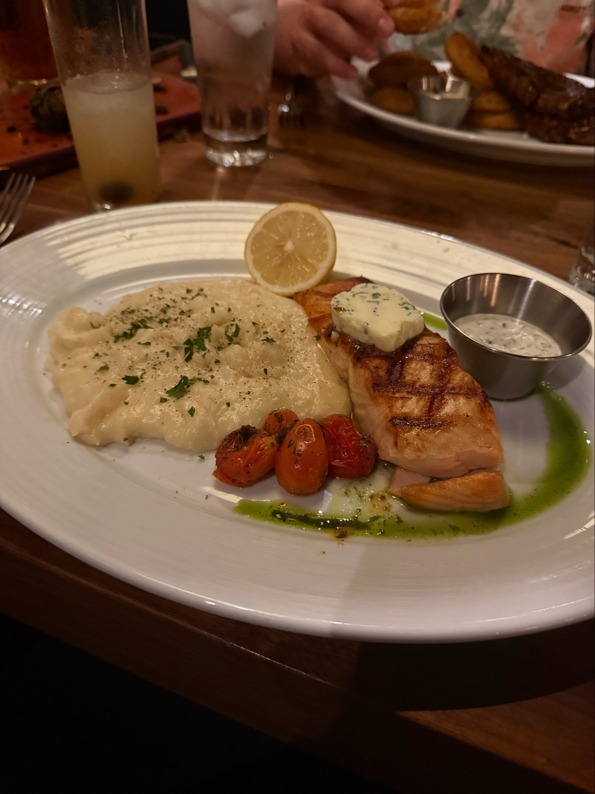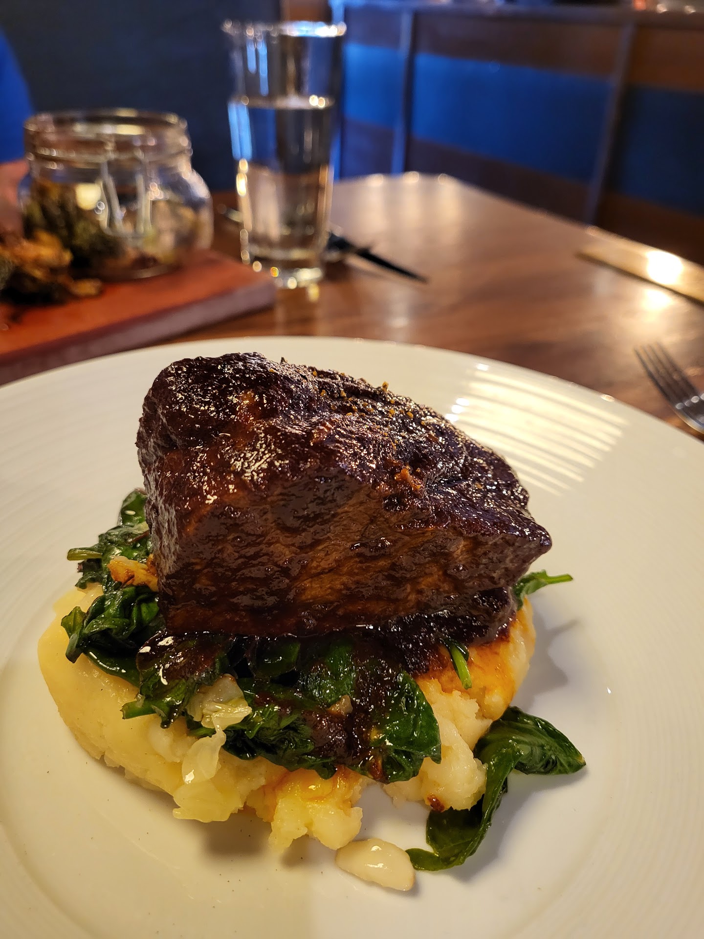 This place was really just a complete show stopper. I came here this past weekend with my family not expecting much as it was just a last minute reservation my mom suggested for us to have dinner. We arrive as it was going to rain and they practically insisted they sat us inside and offered us a reserved table up until the time it was set for so we were able to eat in the building even though we booked for outside. Our waitress was so lovely and while I can’t remember her name I certainly remember her. She was new so she was having some trouble remembering some things about the menu items but she was very transparent about it and I honestly never would’ve guessed she was new at all. She was extremely attentive, very very sweet, seemed like she really cared about our experience and overall was just a delight to have as a waitress. My mother got a cocktail she found delicious and our waitress helped my grandfather find a bourbon selection he would like because they didn’t carry any of the ones he wanted but she kept going back and checking for him and ended up helping him settle on something he enjoyed very much. On to the food: We ordered the Brussels sprouts and their bread as appetizer’s and when I tell you that was some of the best bread I have ever been served at a restaurant I am not kidding. It was a warm hot brioche bread stuffed with butter in the middle and pulled apart so easily to serve into several pieces. The Brussels sprouts were also very delicious and while I do enjoy Brussels sprouts on the regular, these were good enough for me to get every time. when I opened up the menu and was looking down at the steaks I was absolutely astonished to see a filet mignon for 30 some-odd dollars. I figured it was probably just okay but I ordered it anyways because I just felt like having a steak. I ordered it medium rare with a baked potato on the side (very good as well but it is also hard to go wrong with a loaded baked potato) and when the steak arrived it was probably one of the better filet mignon’s I’ve had in my life and I have had a lot of good ones. It was so juicy, so tender, and so much flavor. Often times I find while the steak has juice and is cooked well it is lacking in flavor but this filet was packed with it. I am mostly so astonished because of the quality paired with the price. My family also enjoyed their entrees very much which is saying a lot because usually somebody has some critique to make, speaking of only one was made the whole dinner and it was that the cream of spinach was “too rich” for my father and he said he had never had cream of spinach be too rich for him in his life. After we finished our entrees they still offered us dessert even tho we were nearing our deadline of 7:15 (we had sat down at 5:45). We ordered the butter cake and coconut creme pie I think it was, and when they brought it out they also brought out their chocolate cake as a little treat they said which was very very sweet. I did not have any of the desserts since I was full but the butter cake looked absolutely delicious to me and I wish I had taken a bite. They did not rush us out even though they had a timeline to follow and given I think we were still respectful of their timeline, they did not make it a stressful experience for us at all. Overall this was an incredible experience that I hope to have again very soon and I plan to have my birthday dinner here this coming week now. The service was excellent (something that is rare nowadays), the food was very enjoyable for an extremely reasonable price that I personally think should be raised, and the restaurant itself was beautiful. I have never ever left a review on a restaurant like this but I am just incredibly impressed. The service was better than most fine dining and high end steakhouses I have been to and the food I would dare say rivals them. Please please go here you will have a...