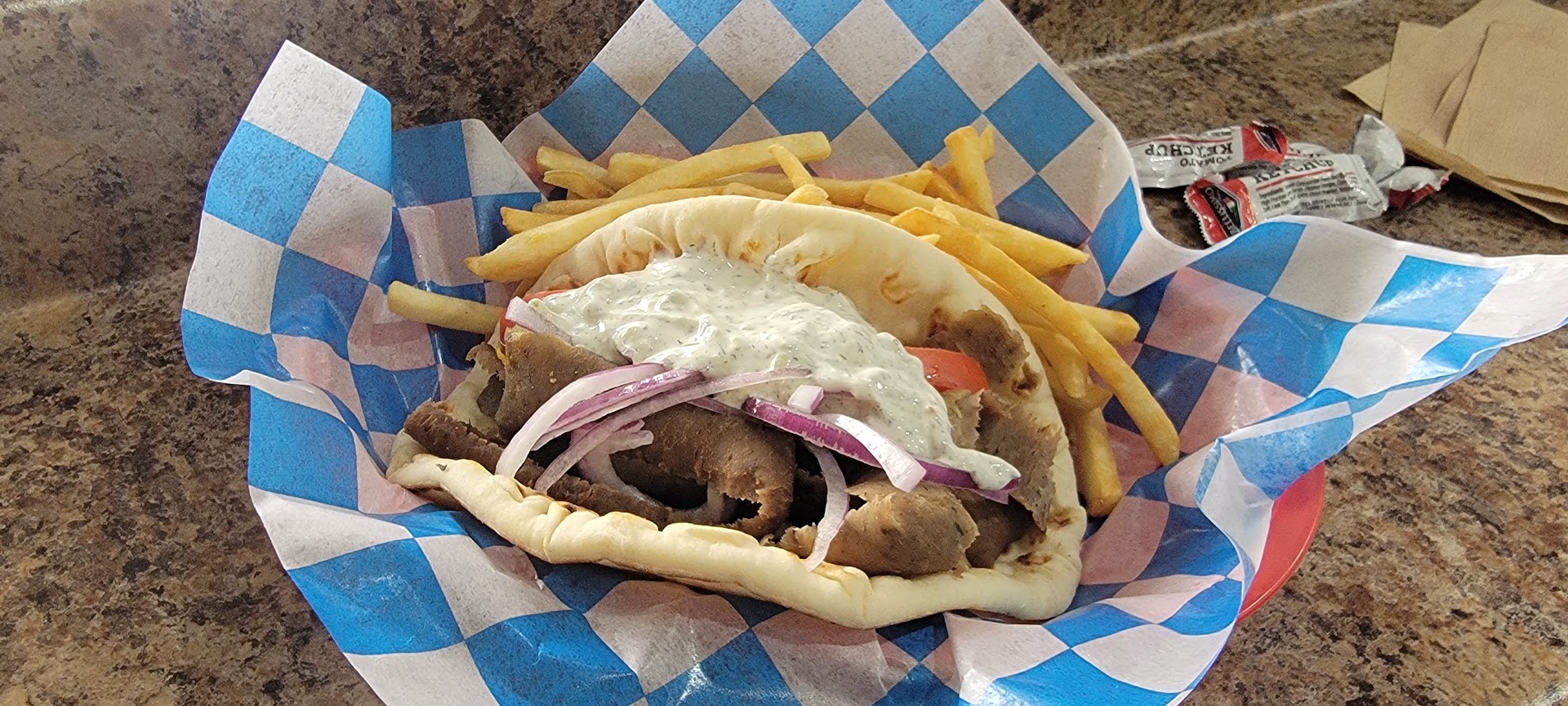 Read moreIt is not perfect rendition of the style, but very reasonably priced gyros, and very generous portions are served, so a decent place to go. Service is friendly and fast. Place is on the small side, and most of the seating is arranged as booths. There is also outside seating, but obviously limited by weather. Middle eastern style food from your neighborhood friendly Russian entrepreneurs. Gyro pita with plenty of meat for around seven bucks after tax makes this reasonable place for...