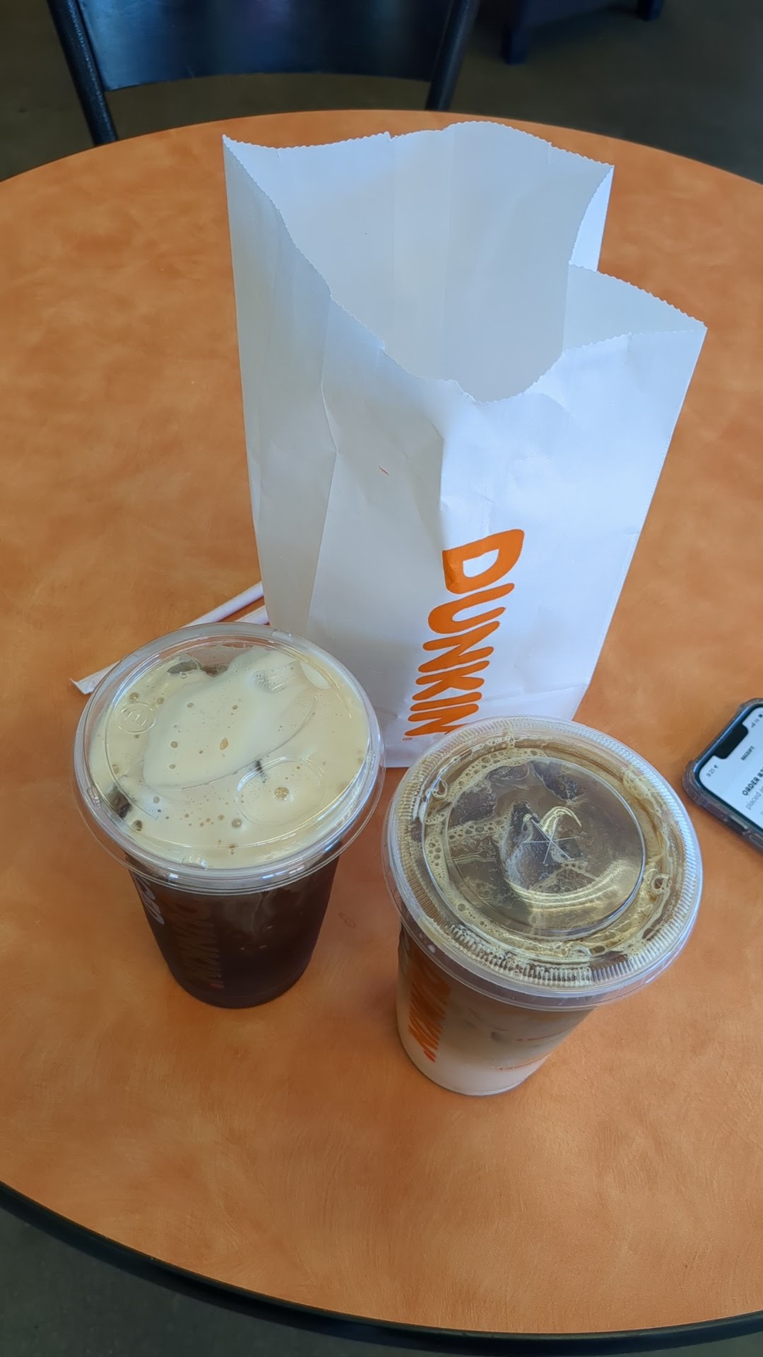 Read moreI’m going to start off by saying I used to work at dunkin, so I don’t go to dunkin unless I have to. In this current case, my grandma is in the hospital across the street and their coffee place isn’t open at 5 in the morning, so I had to. That is all to say, you can’t fool me and to lie so stupidly is amazing anyways. So, I order a large salted caramel cream cold brew with two cream added and some other stuff. I get handed a salted caramel cream cold brew that was black on the inside. And trying to be nice, I ask, “did the cream get put in this?” And the counter girl asks the drink girl and I swear the drink girl goes “yes. I did.” And I look at the counter girls and go “really?” Because you can CLEARLY see it’s black. And she says “did you want more cream?” And I go “yes, I want the cream I asked for in it.” And the drink girl straight up says over her shoulder “well, it’s light cream so you wouldn’t see it.” First of all, what? Who are you fooling? Second, I KNOW what two cream in coffee that’s in a clear cup looks like. I used to work at dunkin, and it doesn’t look like black coffee! So, you’re trying to tell a customer they have invisible cream? Girl, please. But I didn’t respond. Because at that point, I’m like, what in the world am I experiencing right now?!?! So the girl comes back, and she had SHOT THE CREAM THROUGH THE HOLE IN THE TOP OF THE CUP! The cold foam was all over the lid. And she goes “you’ll have to stir it.” And I’m just very annoyed at this point. I don’t argue, but what in the world is going on at this location? And this is after I had ordered an everything bagel and paid for it only to find out they only have raisin or multi grain. To make matters worse, I get over to the hospital to start eating my bagel and it’s hard as a rock like it’s from yesterday. I don’t want anything free from you guys. I won’t ever use it anyways. I’m not “complaining” to get something. I’m bringing this to your attention because that’s unacceptable and I’d hate to find out what else these people working this morning have...