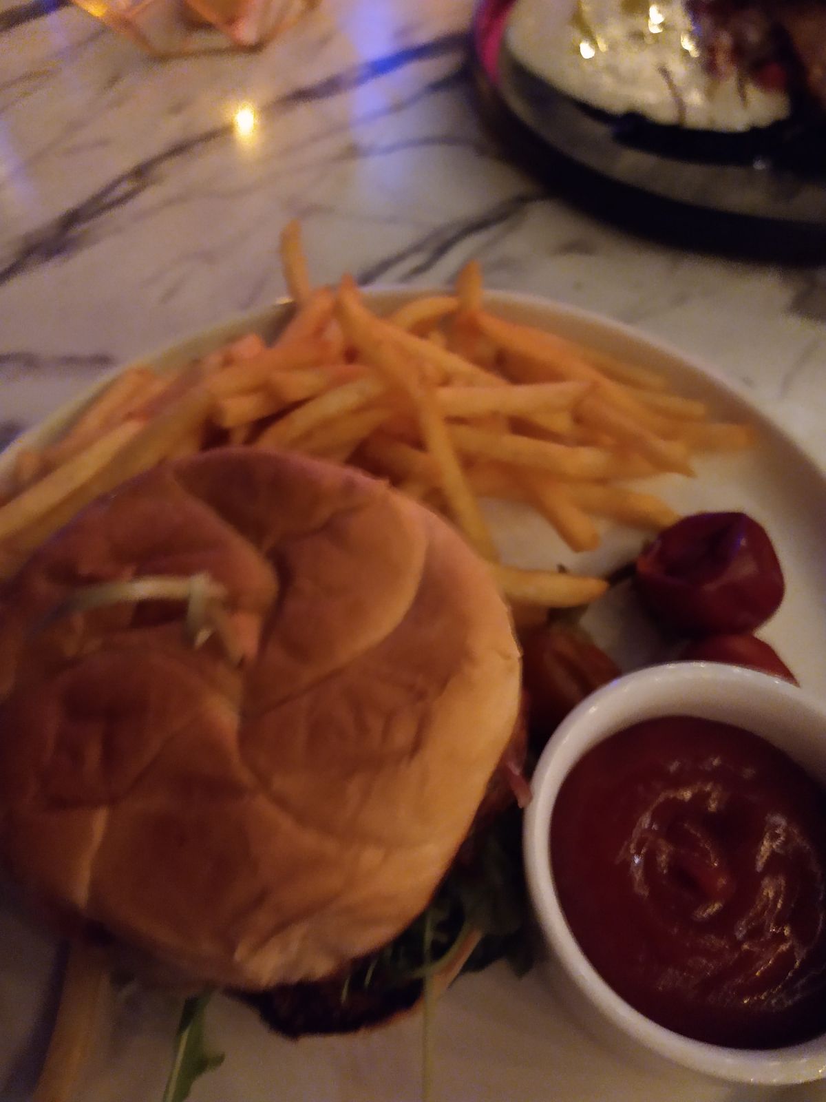 We ended up ordering the two suggested entrees. My niece had the Mafia burger and I had the Branzino. Both absolutely excellent. She almost ate the whole thing and this was a huge burger and fries, even for a teenager. The serving on the fish was also very generous. The wine suggestion was perfect. The service was attentive but not overbearing.