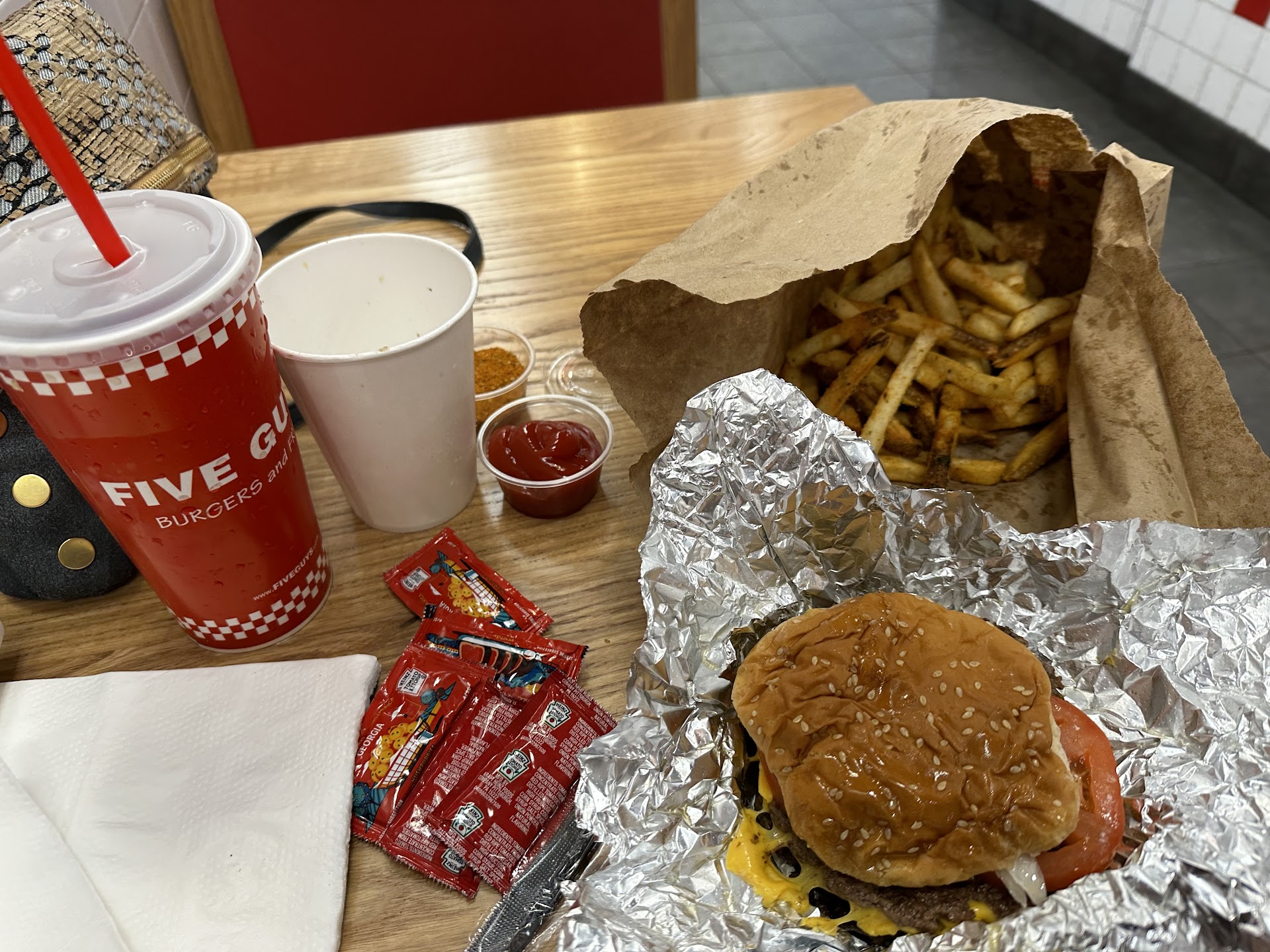 Read moreI have been a repeat customer of Five Guys for many many years, but the prices have truly gotten insane. A burger and fries was $18 which would be okay, except that they didn't even do a full topper on the fries, telling me it was policy to do a half topped for a small fry order (first time I've been told this in my life) and proceeded to tell me "it's always been that way" which is just plainly not true. Now I hadn't been to this particular location for almost 2 years, so I figured it may have changed in that time, but the way the staff reacted was so rude and unprofessional. No apologies, no acknowledgement of my experience, just "that's policy, not my problem."