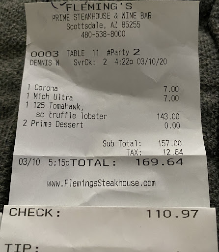 Read moreOnce upon a time there was a group of three going out for a nice steak dinner. All three looked forward to a scrumptious meal. They had a booked reservation and were seated immediately. 😁The three looked over the menu, then ordered cocktails. The first cocktail was amazing. The second cocktail was just right. However the third cocktail arrived with a plump, dead, fruit fly floating around in the glass. Taken aback, the three looked at each other, alerted the busy, yet friendly, waiter about the problem. He rushed out a new bug free cocktail. ☺️ The three tried to forget about the incident and shared a small loaf of bread with pumpkin butter. Yummy. After a bit, the three each ordered a glass of red wine. Sadly they were told that the wine was sold out. 😔 However the nice, yet friendly, waiter scurried around the restaurant and found a previously opened bottle and served them right away. 😊 Dinner arrived and looked tantalizing. The first filet mignon was cooked perfectly. The second filet was a bit cold. The third filet was completely raw. They sent it back for further cooking. The returned steak was cooked correctly yet a bit blackened. The three slowly finished their steaks and ordered dessert. The first, second and third desserts were all scrumptious. However as the three each finished their glasses of wine, one noticed something strange in their mouth. The bottom of their wine glass had numerous tiny, medium and large black chunks in it. Possibly an old corked wine? They weren’t sure but felt sickened. The one spit out the contaminated bits, paid their bill, and vowed to never return again. They were somewhat relieved to have part of their meal comped for the numerous incidents. But alas, they will never return. Too many memory scarring incidents...