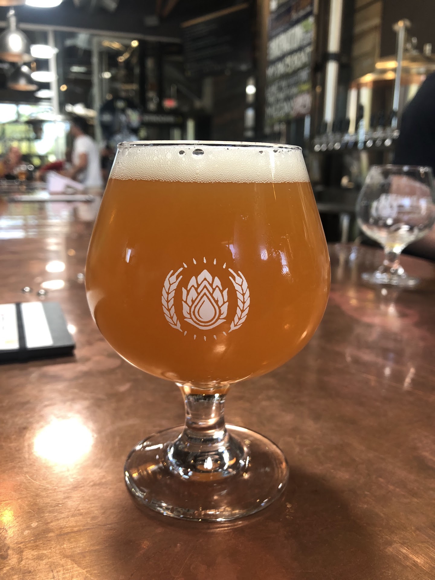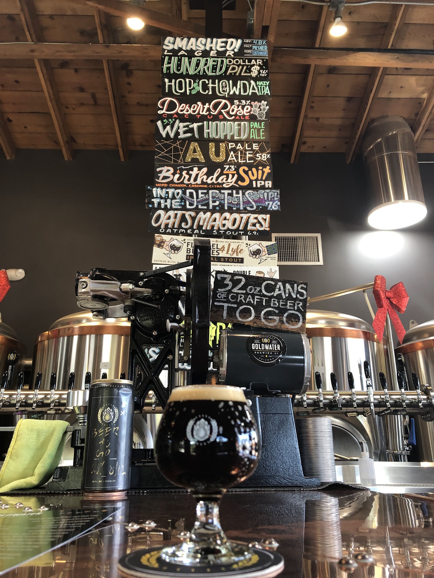 -Goldwater Brewing which is located just off Goldwater Boulevard and Scottsdale Road is a beast of brewery. -The brewery caught my eye after checking out the photos of their beers (and there were plenty of other breweries in the area I could have tried). -My brother and I had some time to kill before catching a flight out of Phoenix and we wanted to check out a brewery. -The location is very cozy. -They have a nice industrial feel w/ the open layout, copper bar top, canning machine and popcorn maker. -The Birthday Suit IPA is an excellent West Coast IPA at 7.3%, I loved it. -The Hop Chowda New England IPA at 6.4% was my favorite. -I've never seen or tasted a cloudy IPA, the color stayed solid and the taste is unbelievable. -So unbelievable that I had to it canned in their 32 oz. can so I could bring it to my beer drinking buddy who's a VP at Applied Materials.