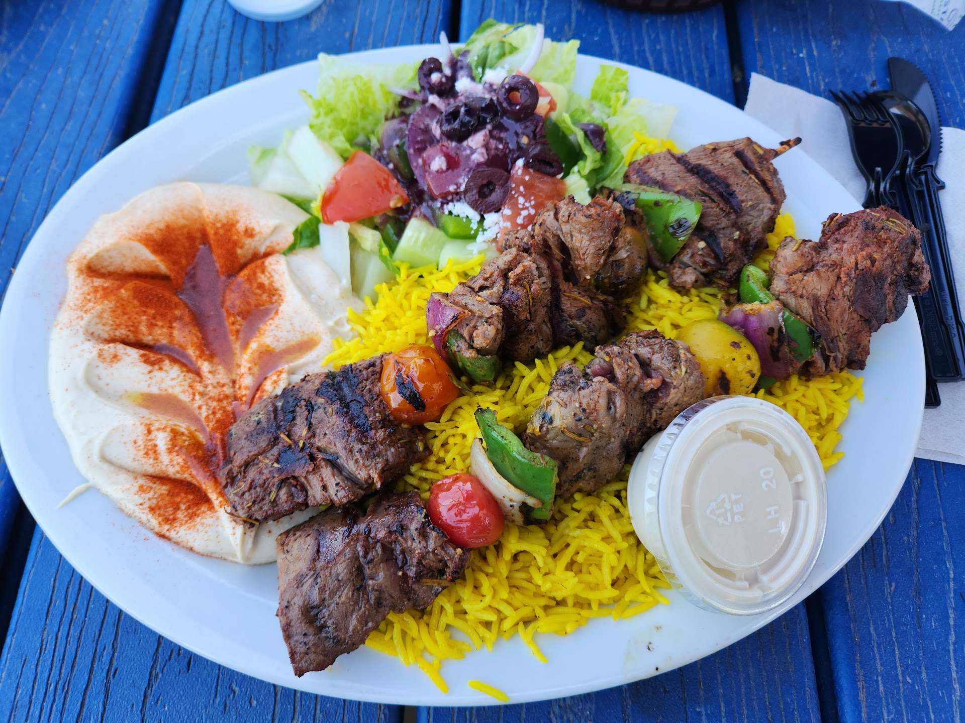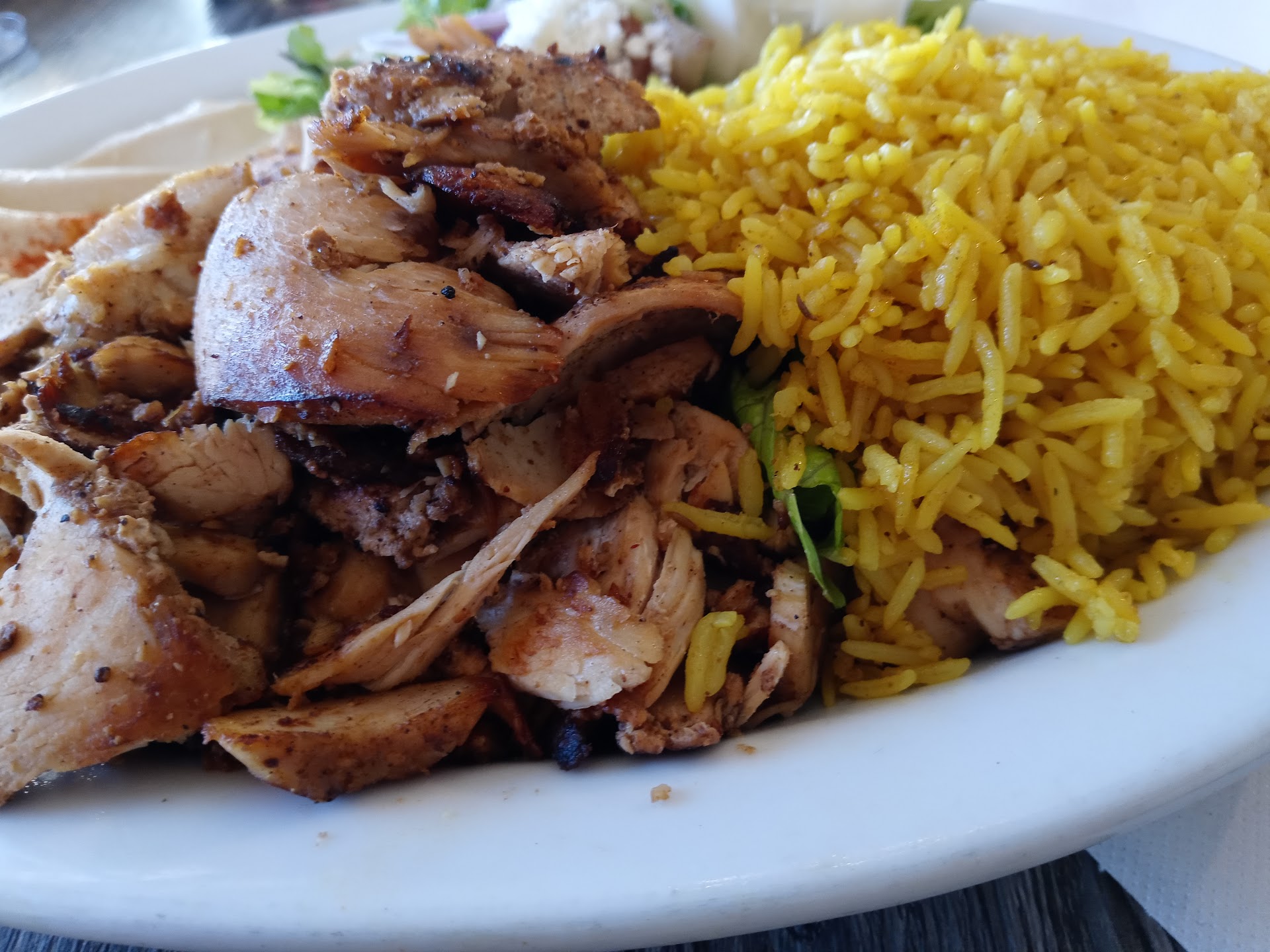 Read moreChanged it to a one star today. Since my first time coming here was my last day in Phoenix ~2 months ago and I have to come here every 2 months. I figured I would come back because it was really good, with great service. I think it was a fluke. The person that answered the phone was fine. The person I picked up my meal for seemed like she wish she was anywhere else but there. They're requesting two plasticware packs seem to be an effort for her. On the phone, I specifically asked to make sure I had taziki sauce not the other sauce for my plate, I got the other sauce. The whole point of a chicken platter for me, and one of a few reasons I came back was for the delicious tzatziki sauce. So I didn't have my sauce. There was hardly any lettuce, so I don't know if the salads are really supposed to be this tiny, but last time there was plenty of lettuce. The worst thing though was the chicken. I realize it is supposed to be charred but this was black, burnt and crunchy and the chicken was so dry. Without the tzatziki sauce I tried to use the hummus to flavor it but that's not what I intended or wanted and it didn't. Not sure that I'll give it another try, for that price and quality. ** And the errors are because of...