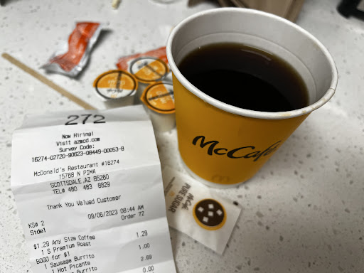Read moreMy guest and I happened to stop in for a quick breakfast at the Scottsdale McDonald's, located on Pima Road and Frank Lloyd Wright. (Tuesday, 09/27/19 at 10:03 a.m.)