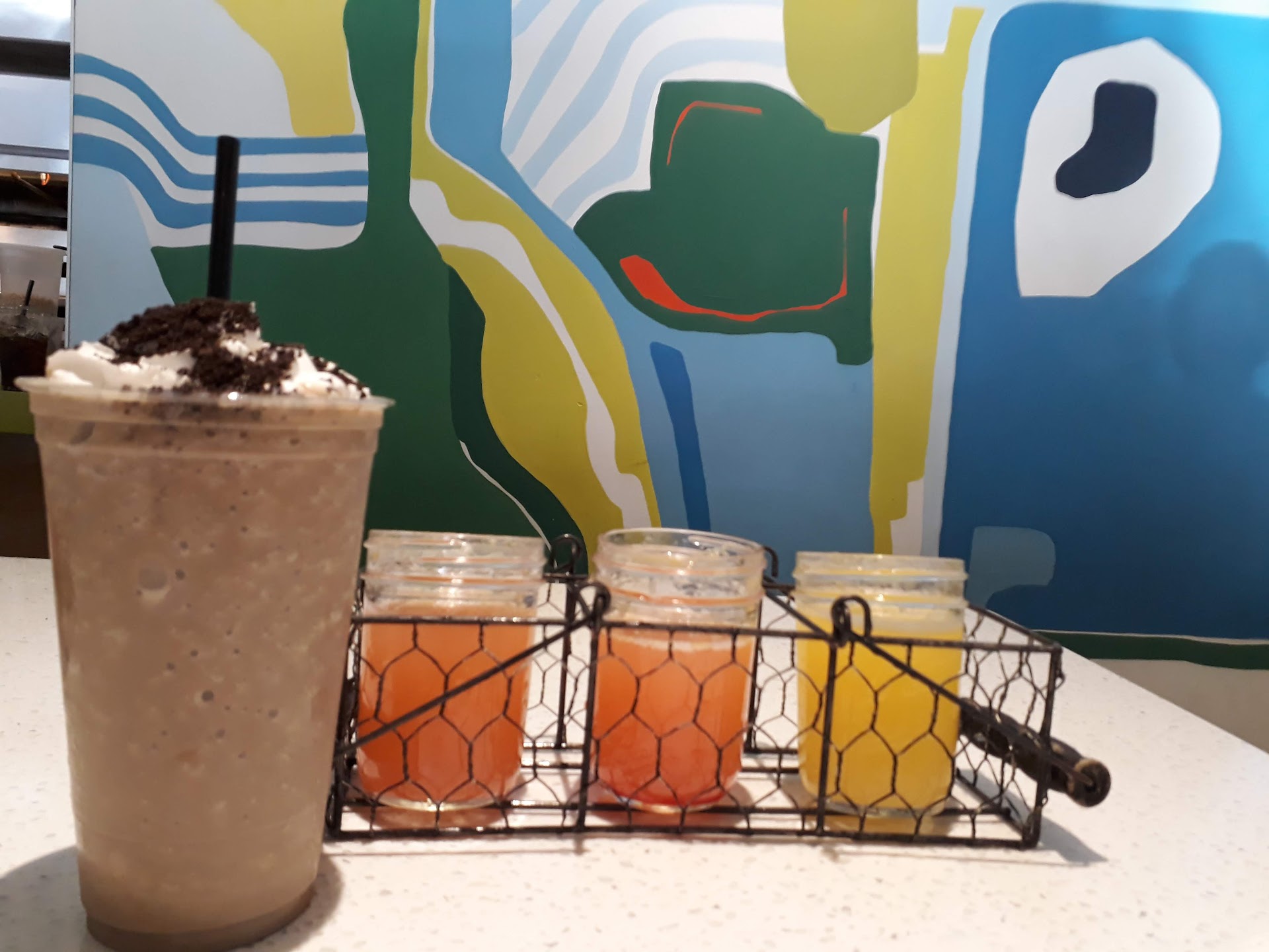 Read morePersonally, I had a great time at Morning Squeeze. When I walked in, the staff very politely told us how long we had to wait and stayed true to their word. Once we got to our table, we were given a moment to look over our menus. A waitress came over to our table saying that she had forgotten to come to our table and felt really bad for making us wait. Truely, we had only gotten there moments before so she had not made us wait long. The staff were very nice, but they were all very casual and relaxed. This wasnt a problem however, I was just a little suprised on how casual they were while speaking to me. The staff quality was good. We got our food and drinks relatively quickly. My guest and I both got breakfast tacos (Im not sure if that is what it is called the name has managed to slip my mind). I got an Oreo Mocha and my guest got a mimosa combo (3 different flavors of mimosas in mason jars for only $9). The tacos were pretty good, they were not the best I have had but they satisfied my hunger. My guest finished all 3 of hers, I only ate one because they filled me up quickly. The Oreo Mocha was almost like a sweet chocolate shake with caffeine. I didnt taste a real coffee taste but the oreo was there. Though mochas are very sweet, I expected some coffee to taste. I did not finish this drink because of how sweet it was, but people who enjoy shakes would probably finish this. Once we were ready to pay, we attempted to get the attention of a waiter but he may hve not heard us and walked away. He was to talking with his fellow workers, so we didnt want to interupt anything though instead of having full conversations I think he should have been focusing more on his customers. Once we got our waitress and paid she gave us a reciept that she had wrote thank you on. I beleive this waitresses name is Cami, she was very sweet towards our table. Overall, I give this...