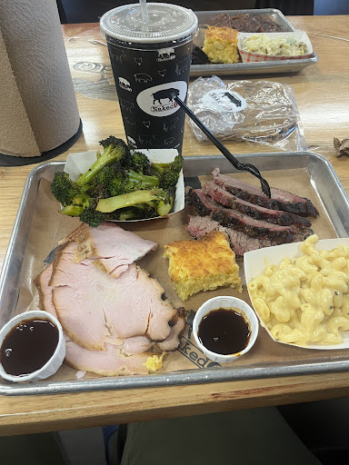 Read moreWent to Naked for the first time and I can’t believe I hadn’t gone before. First off the prices way cheaper than probably anywhere in the valley. $16 for a 2 meat 2 side platter. Huge salted chocolate cookie $2. Wow! Did the pandemic inflation miss this spot? All the employees seemed genuinely happy to be there too. They had wood stacked inside and outside which is always a good starting point for judging any BBQ spot. The brisket was cooked perfect, held together but came apart without effort. The real star of the show was the turkey though. I am almost always disappointed with turkey but this was the best I’ve ever tasted. It was moist, tender and flavorful, just perfection. I got to try some ribs and chicken which were great as well. The sides were good and the corn bread was the best of the lot. Real corn in the mix and it was not crumbly or dry like most places. The only thing I was disappointed in was that their tshirts that said “Eat Naked” were sold out. As we were leaving the owner Oren came around and chatted with me for a while. He’s one of those owners that just loves what he does and you can tell by his product and his employees. I will be coming back here as soon as I can to support great people and a...