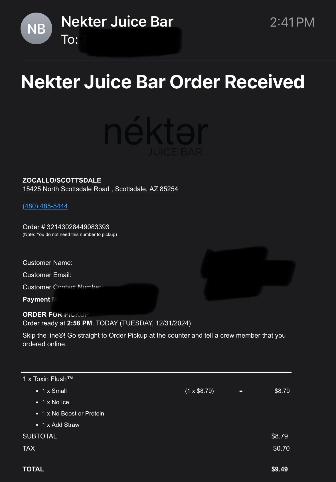 Read moreI am utterly appalled by the abysmal experience we endured at Nekter Juice Bar in North Scottsdale. Having previously enjoyed friendly service and properly packaged catering from this location, our recent encounter was nothing short of a nightmare. Without any prior notification at pickup, the packaging method was changed, resulting in juice spilling all over the back of our car. When we called to inform the center, hoping they could learn from this mishap to prevent future issues for other catering customers, we were met with nothing but attitude and rudeness. We weren’t seeking a refund, merely an apology and assistance in contacting management to discuss the matter further, especially since our car required detailing due to the mess. Instead, over the course of three phone calls, we encountered the most disgusting behavior imaginable, with absolutely zero apologies. This level of unprofessionalism is inexcusable. We will NEVER purchase from or work with Nekter again and highly recommend others to avoid...