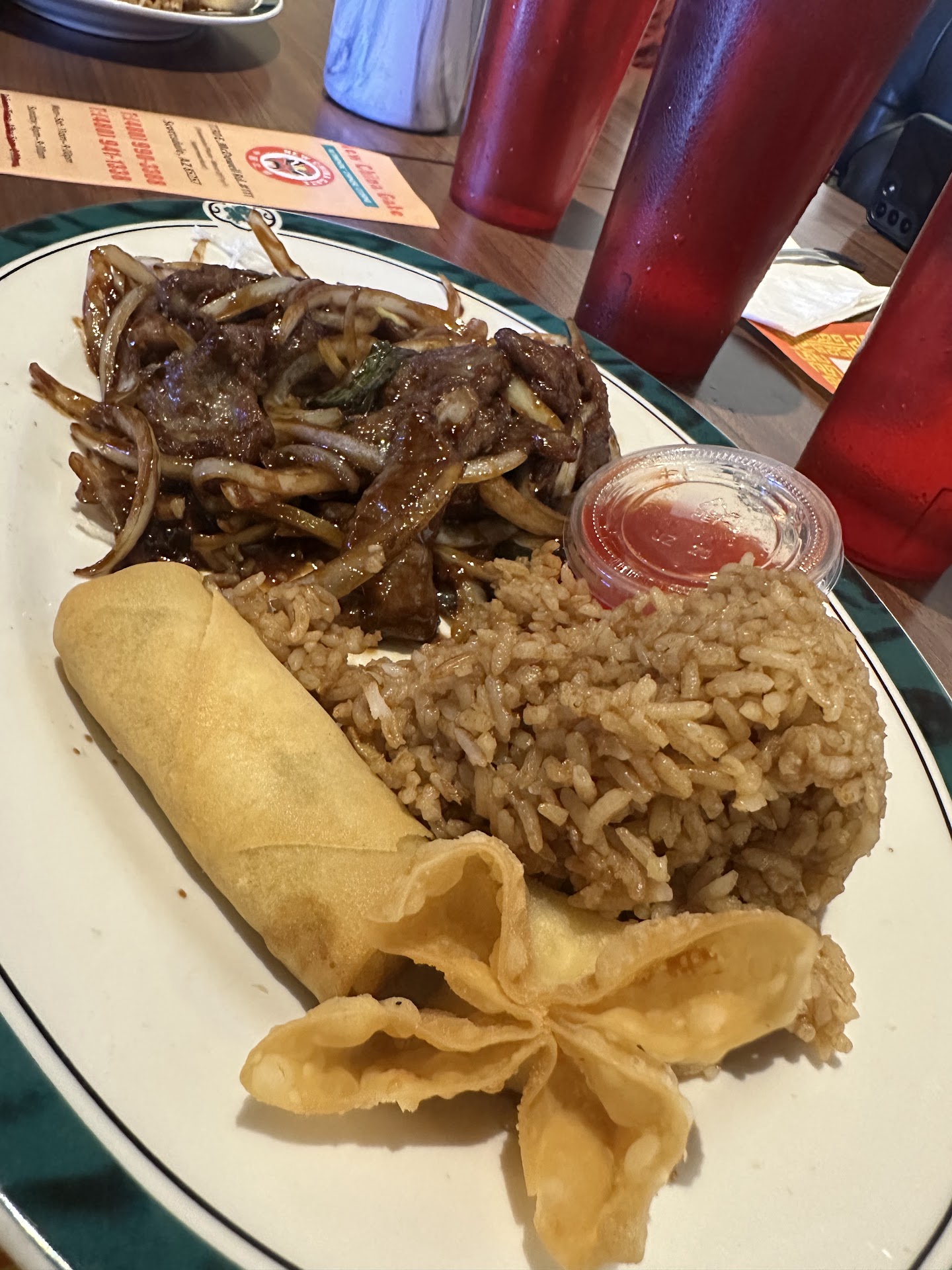 Read morePaid way more because they had a lunch menu at the table so the prices went from being what I thought was gonna be $20ish to $35! The tables set up to order leave no room for people to even get past one another when ordering inside. When I got home, the bottom of the bag was covered in sauce so every container was full of sauce. I ordered !2! Dinners (pay more get more), really cuz for 2 full meals I got !1! Box of rice. Opening that 1 box of rice, it looks old and it looks like they took it from another order or someone’s plate cuz there is lot of other pieces of food inside my the rice! The Rangoon’s are not good just taste like oil soaked bread. Takes a lot for me to rate negative usually but this place...is there anything else that can be wrong?? Definitely better places to get...