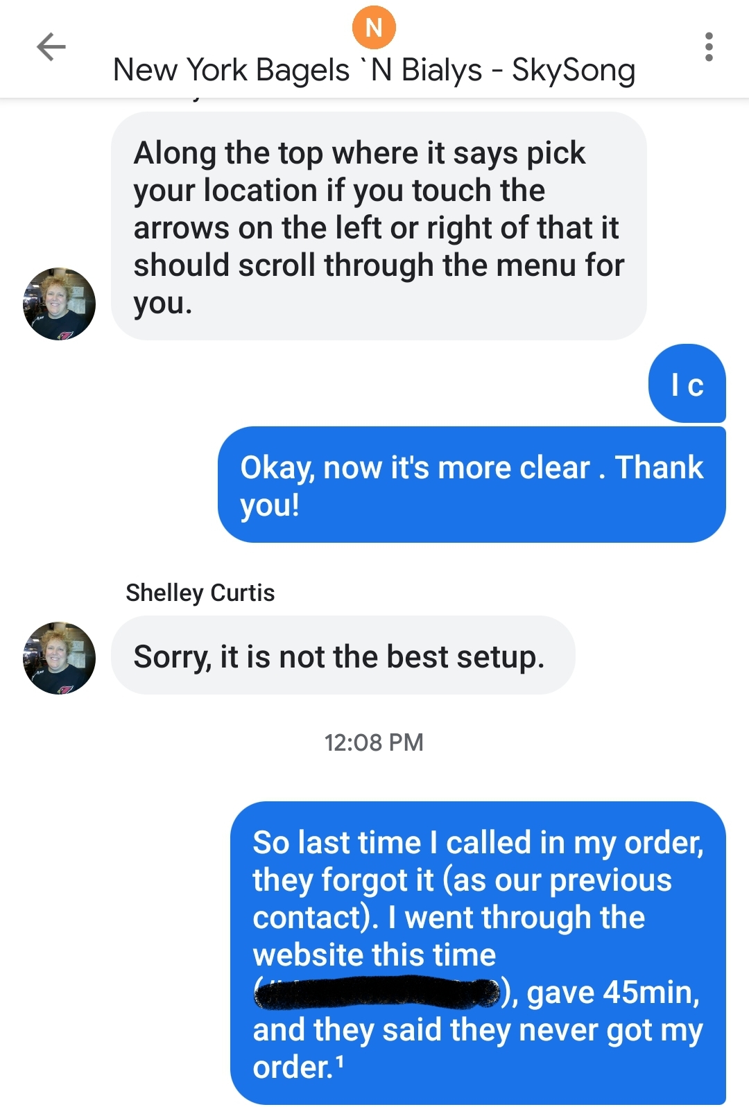 We reached out to them and they explained their process, even agreeing that the setup is not the best. So this time around we followed their steps and put the order via their website.45 minutes later we arrived, same gentleman at the counter, same outcome. He said he never got our order, even after I showed the receipt and gave him the order number. He pulled in a woman who then told us to call in next time, that their online ordering doesn't work there. WAIT A MINUTE, that's the opposite advise they gave out previous visit. Another 15 minute wait, totalling 1hr again. No real advice for the next time (which there will be none).