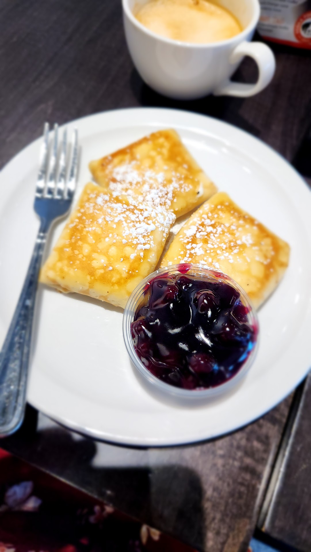Read more3.5 stars. I really wanted to give this place more based on service and the nice patio it has outside, but ultimately, the food is pretty disappointing. I ordered a hot chai, the blintzes, and shared with my dining companions to try the humble hash.
