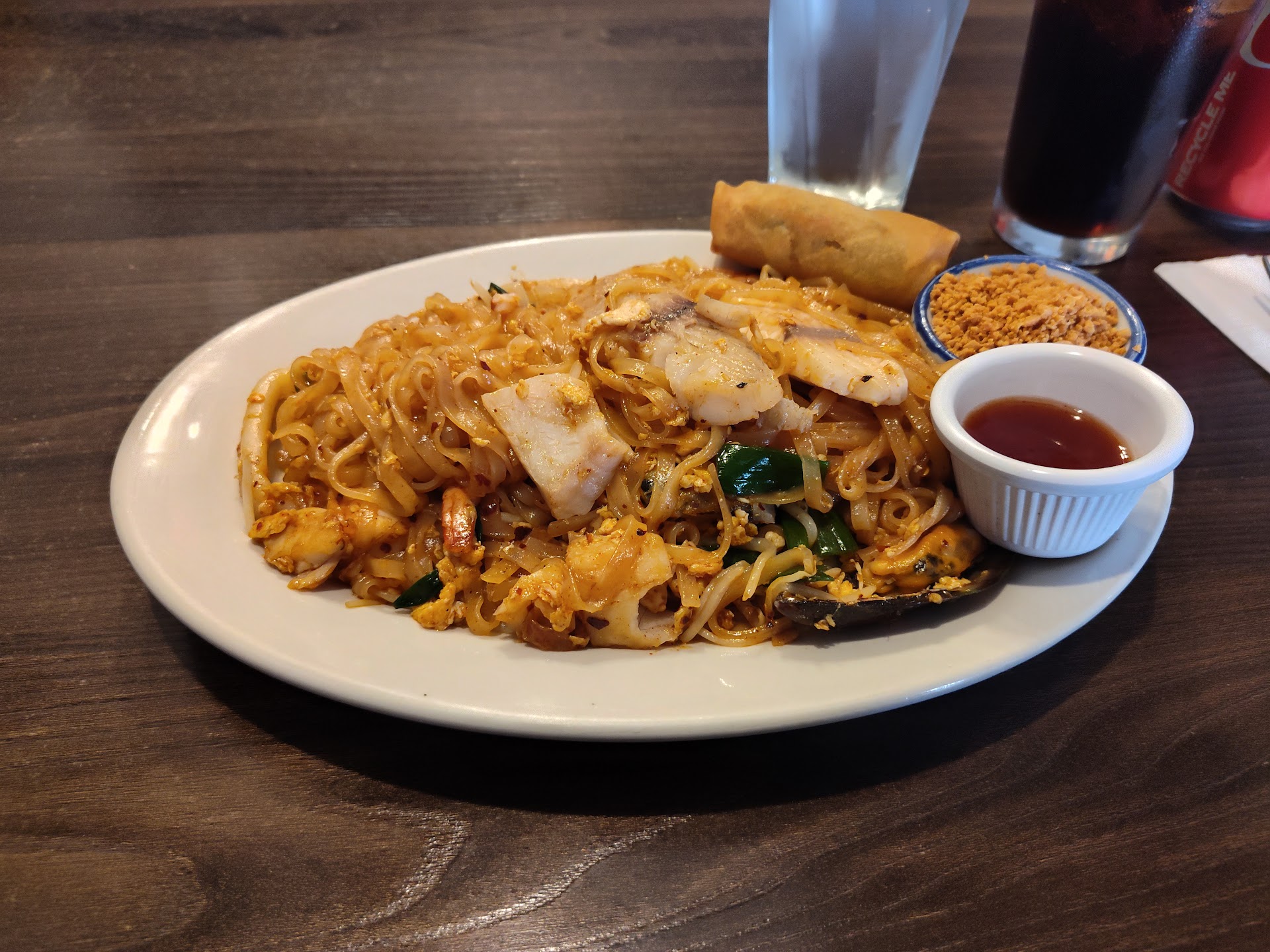 I settles on the Seafood Combination Pad Thai spicy level 4 not overly spicy and really flavorful.
