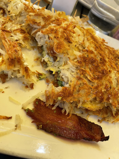 My friend ordered the Mile High Omelet. It was excellent and the portion was good. The hash browns had a funny taste. We would not order that item again.