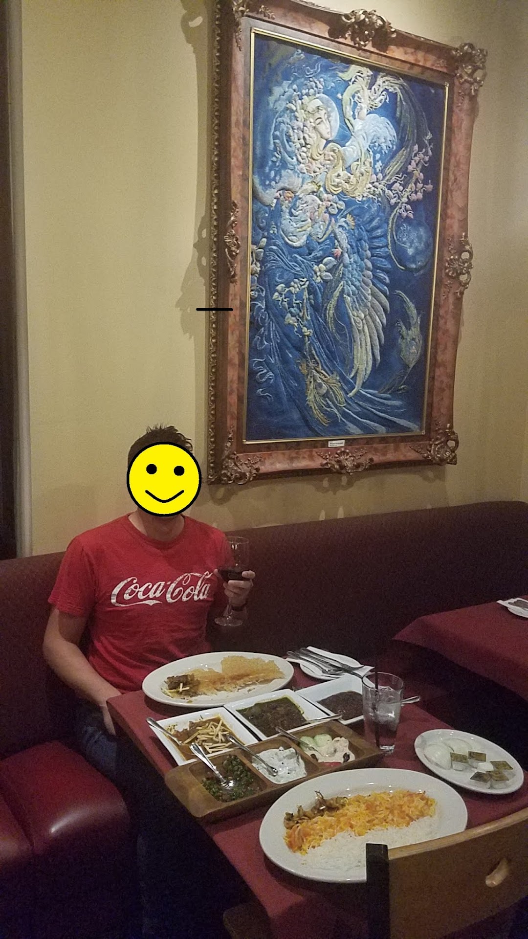 Read morePerfect place for a date night. Romantic atmosphere. Been here twice so far and can't wait to come back. The first time I had Hummus and Maust' Khiar (yogurt) and pita to start. Very creamy and delicious. For dinner I had the Beef & Chicken shish combo plate. The meat was juicym tender and the veggies were crisp. Also a side of special rice the Zereshk Polo, with nuts and berries mixed. The rice is not dry so I like that. Very delicious. For dessert I had the Persian ice cream, that has wonderful pistachio and rose flavor unlike any ice cream. The next time, I tried this wine that was made from pomegranate. It was not too sweet and much better than plum wine. Never had anything like that before. I also had the requisite pita and hummus. I love shish, but I was encouraged to try the stews. They had interesting flavors unlike other stews. I also tried the Oyster Mushrooms that taste really good in their marinated sauce. They go great over rice. For dessert I had the baklava. It was very nutty and sweet. The staff are very friendly and helpful with recommendations. They even explained the meaning and history behind the lovely art on the walls. Everything is good here, lots of unique flavors and large portions. I think this is the best...