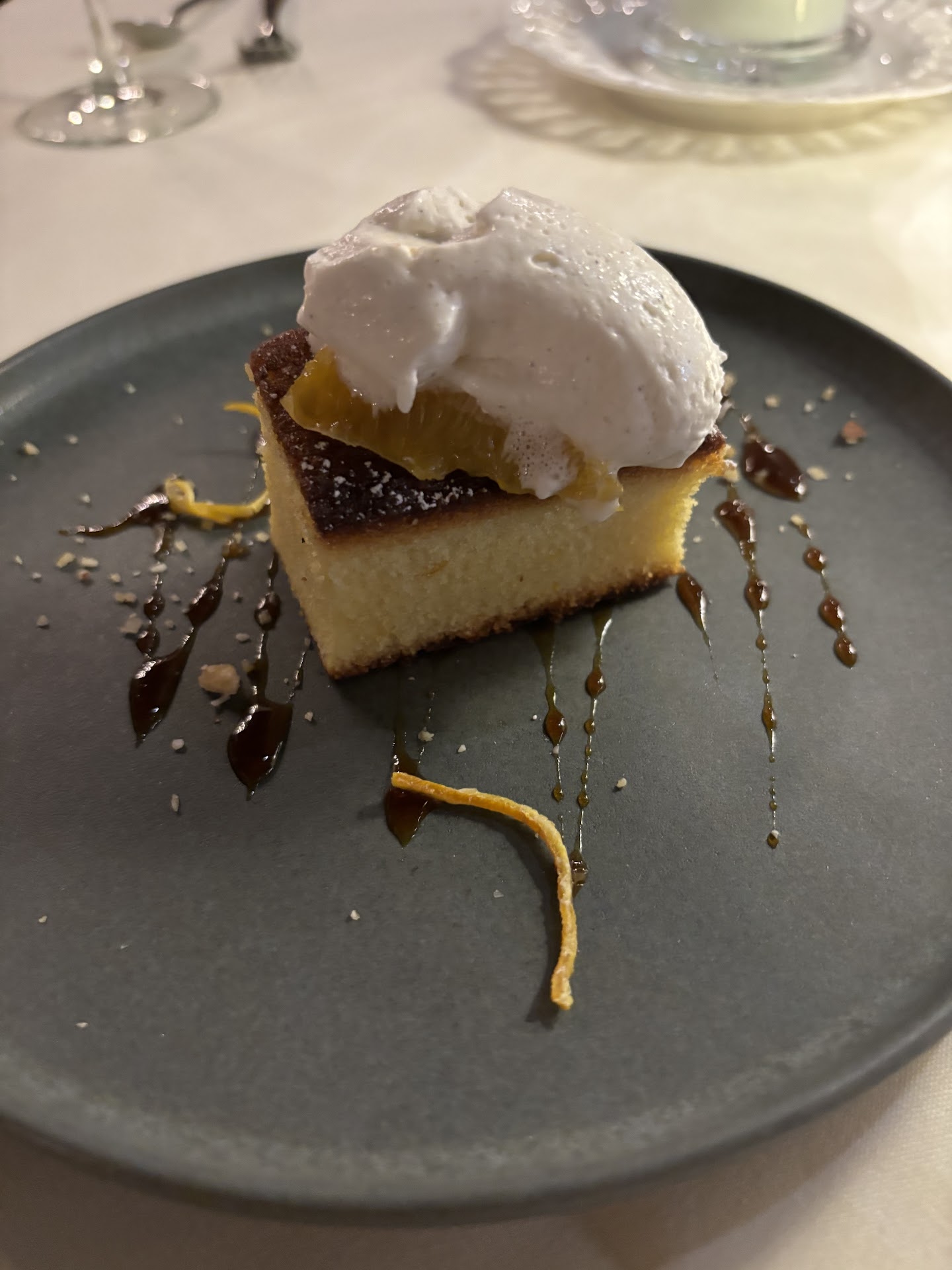Instead of the sea bream, my friend and I both ordered the "ocean trout" which came with asparagus risotto. Both had very little taste, and the fish itself was pretty dry. Same with the olive oil cake - not a lot of flavor.