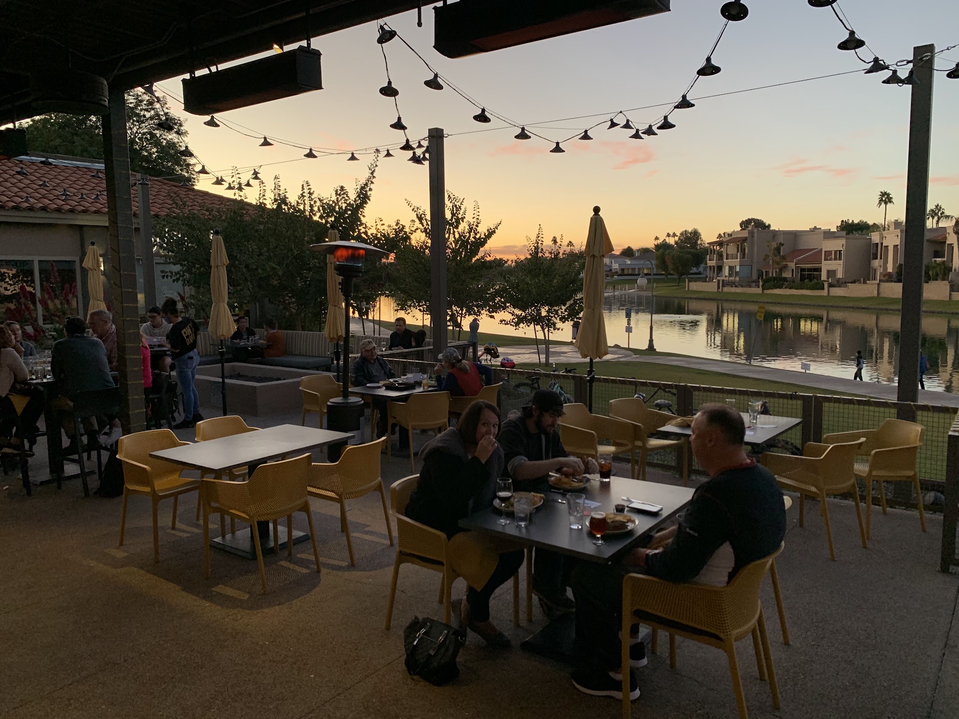 Twice I and my friends tried to give this place a chance. We often ride our bicycles from Tempe to Scottsdale. This seems ideal, right off the lake, quiet and clean. Again we rode our bikes there. The waiter was quick to thrown down menus at our tables, only to tell us the kitchen is closed and we have barely 40 mins to get our drinks. You think he was talking to some of his staff versus treating us like customers. Oh other customers near by, they were giving the white glove service even new customers coming, not us! We had our first round of drinks, only again to met with a quick another round or the tab? Since we saw other people enjoying their drinks, we decided to have another round, only to be told how soon we need to leave.