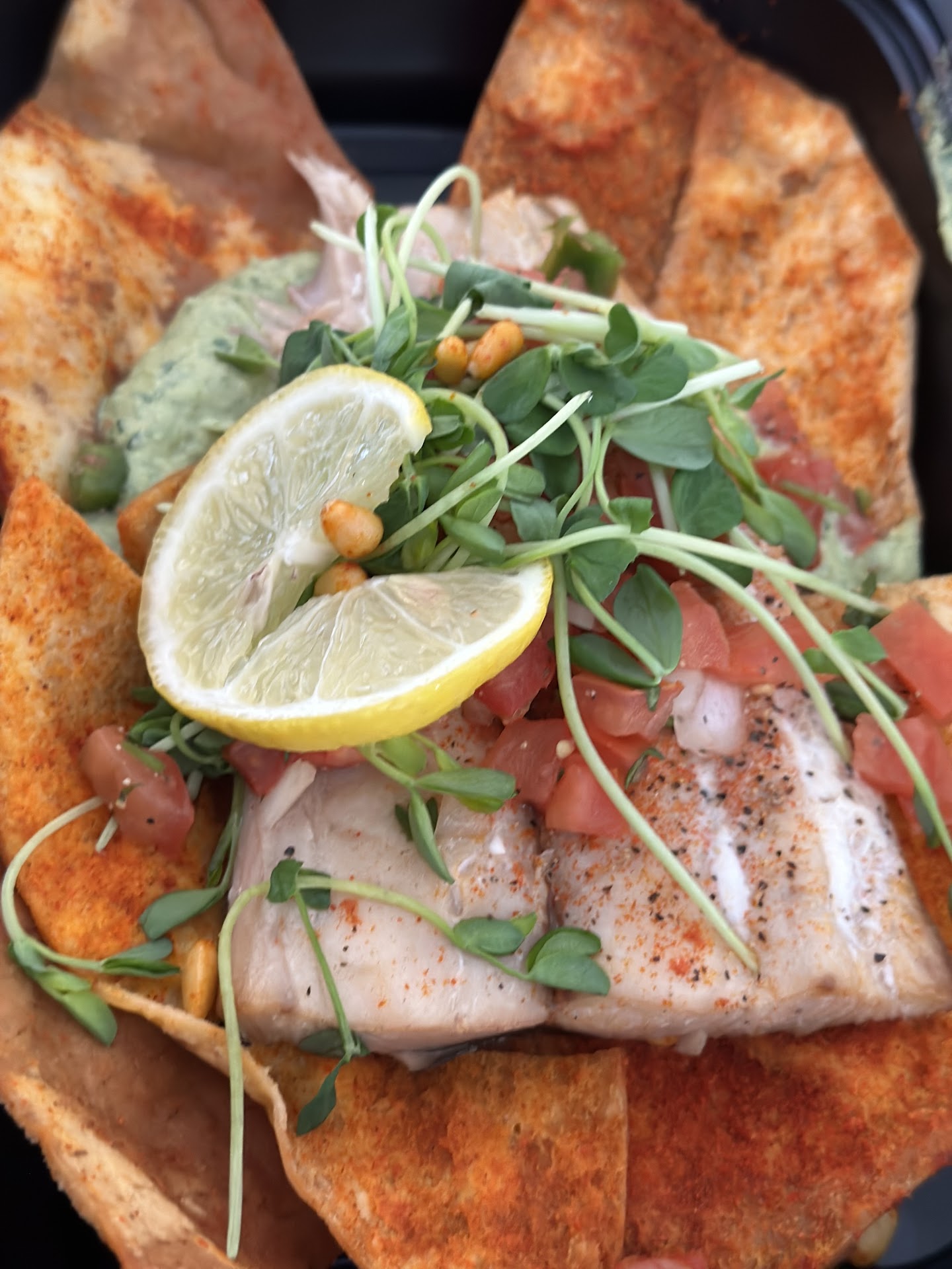 Another standout dish at Pita Jungle is the mahi mahi with pita chips. The fish is perfectly cooked, with a moist, flaky texture and a flavorful seasoning. The pita chips add a nice crunch, and the cilantro lime hummus ties everything together perfectly. It's a dish we always come back to, and we've never been disappointed.