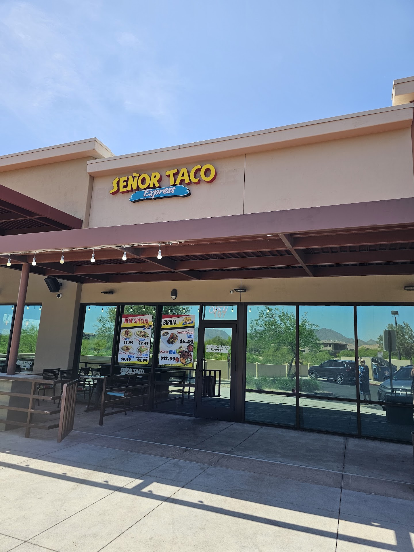 Read moreSeñor Taco Express has very tasty dishes. The tacos are as authentic as you can get and for the size and value it’s even better! The service is phenomenal with friendly, helpful staff and it’s extremely clean. The views of mountains sitting by misters are a plus, but if you can’t stay just go through the drive through. This is now my favorite place for a taco. The shrimp burrito is huge and delicious with many salsas offered in containers. I rarely have anything great to say about a Mexican AZ Taco place, but this place was legit! It’s Muy...