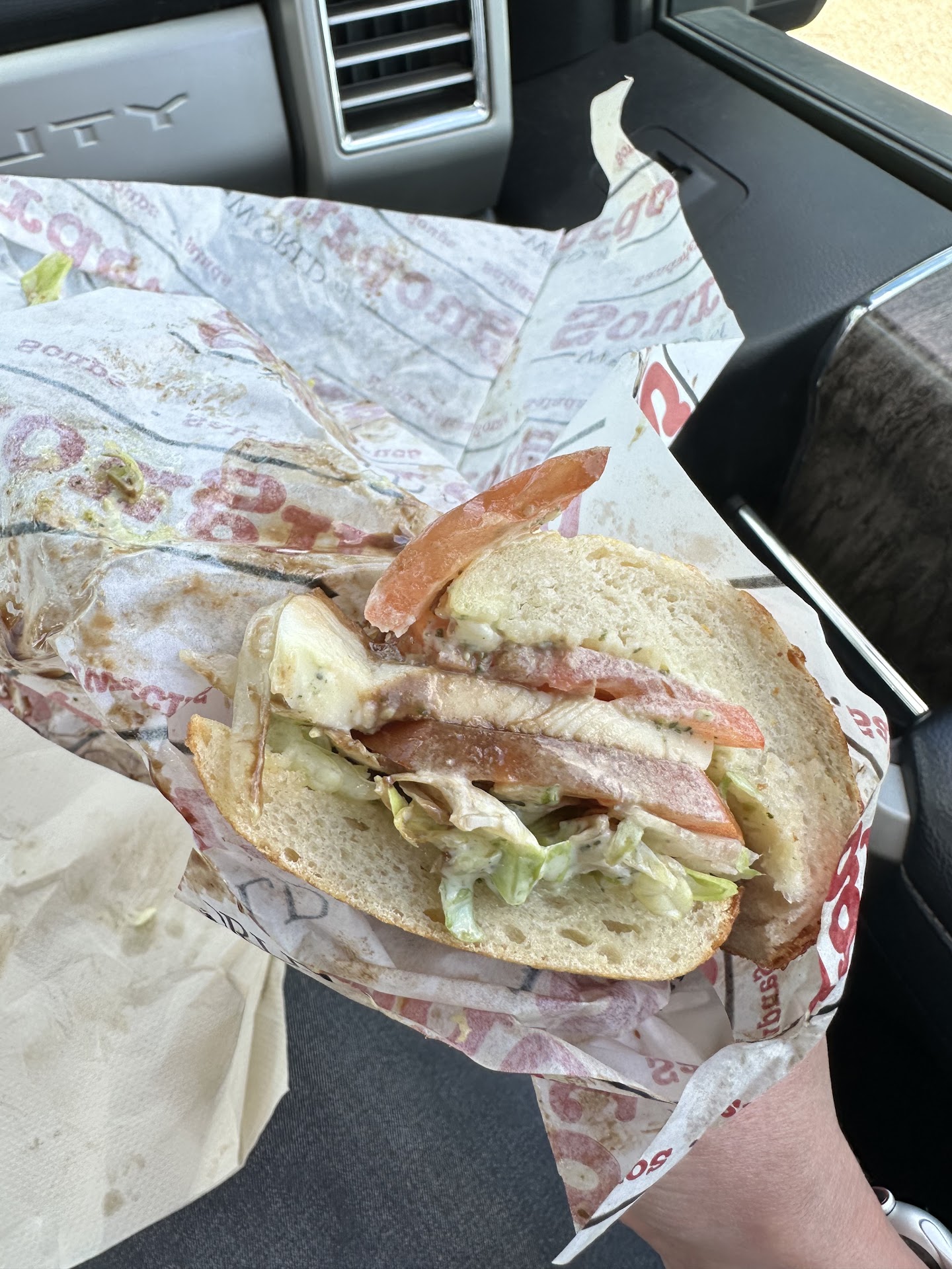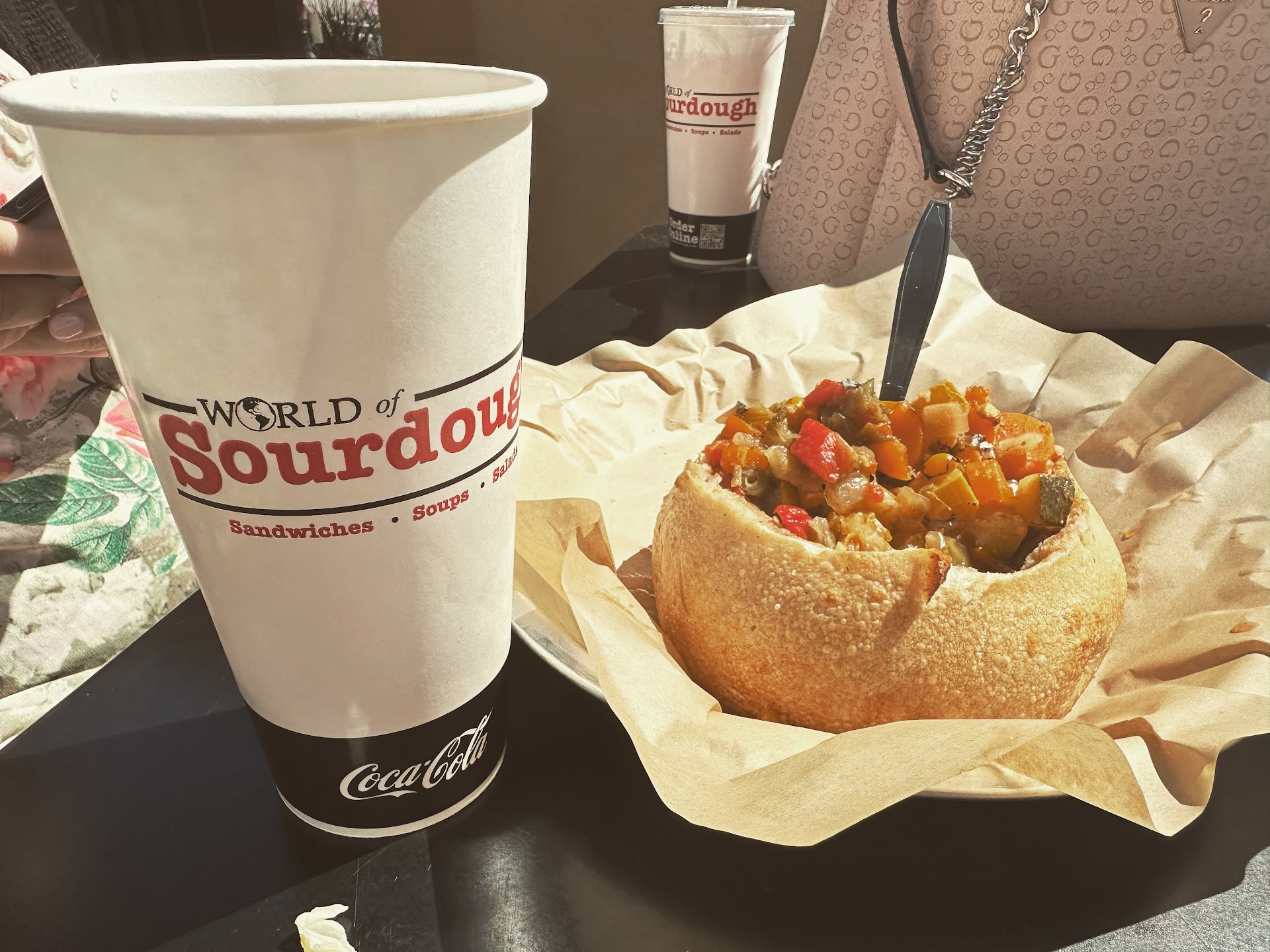 I got the Clam Chowder soup in the bread bowl and the Turkey Pesto with the works and both mustards, I told them please make it the way the chef intended, which is what he asked me if I wanted. Don't forget the pickle. I ended up getting 3 meals and a toasty snack out of this it was so much food and so flipping good. The bread itself is heaven. After eating my soup I saved the rest of the bread bowl for later and heated it up in my air fryer and spread REAL butter on it, FANTASTIC highly recommend this if you are a toast/ bread lover. If you don't like sourdough bread do NOT go here, this is not the place for you.