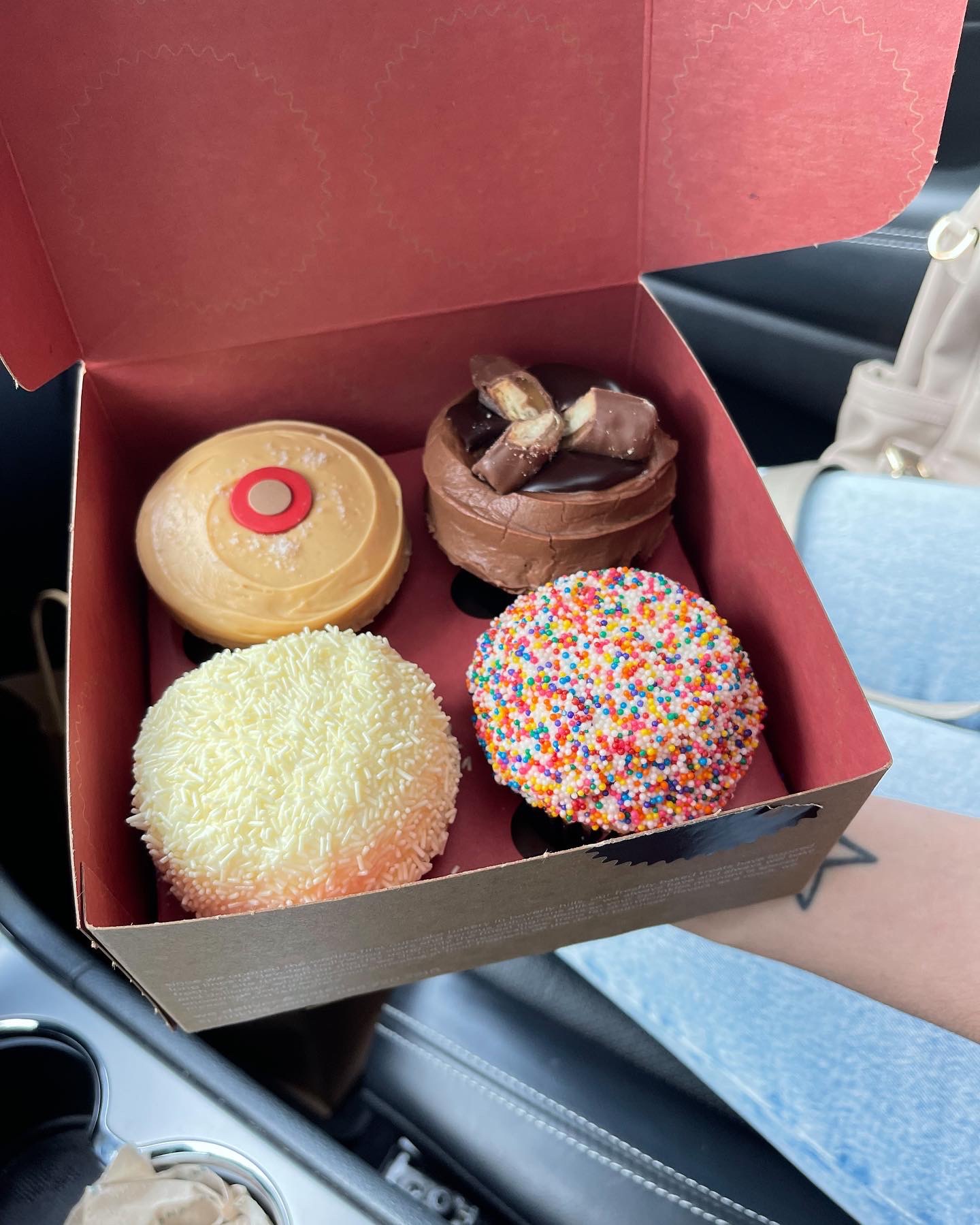 Read moreI used doordash delivery to have my order sent me to me.. They’re .5 miles away from my apartment but arizona’s heat won’t allow me to walk outside anymore . Anyways, these cupcakes were actually perfect and delicious. A lot of the reviews talk about the texture of the cake and the size. They were sweet, the rational portion to icing to cupcake was pretty proportionate, too. The texture of my cupcakes were moist and i definitely don’t see how people can that they’re dry. And either way, not all cupcakes are supposed to taste the same . We don’t all prefer a very moist cupcake and some of us prefer it to be a standard cupcake . i think everyone just have different opinion and perceptions when it comes to food.