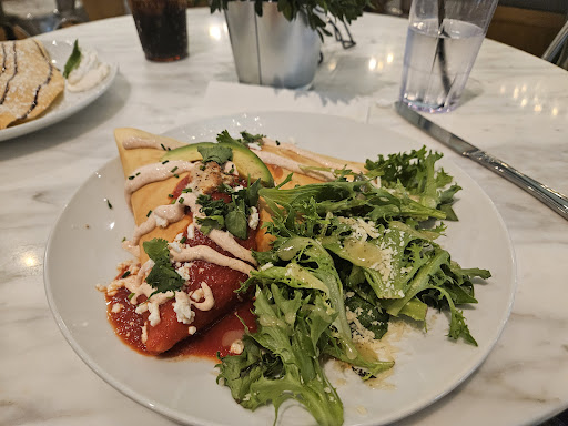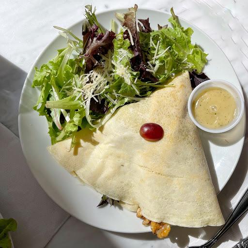 I had a Mimosa and a Truffled Caprese Crepe (mozzarella, basil infused cherry tomatoes, & truffle oil). My friend had the Turkey Grapes & Brie Crepe (turkey, french brie, red grapes, spring mix, walnuts, & dijon vinaigrette). Both came with a salad. We both thought the food was good, a wow, maybe not, but still a good place to meet up with people and have a nice lunch.