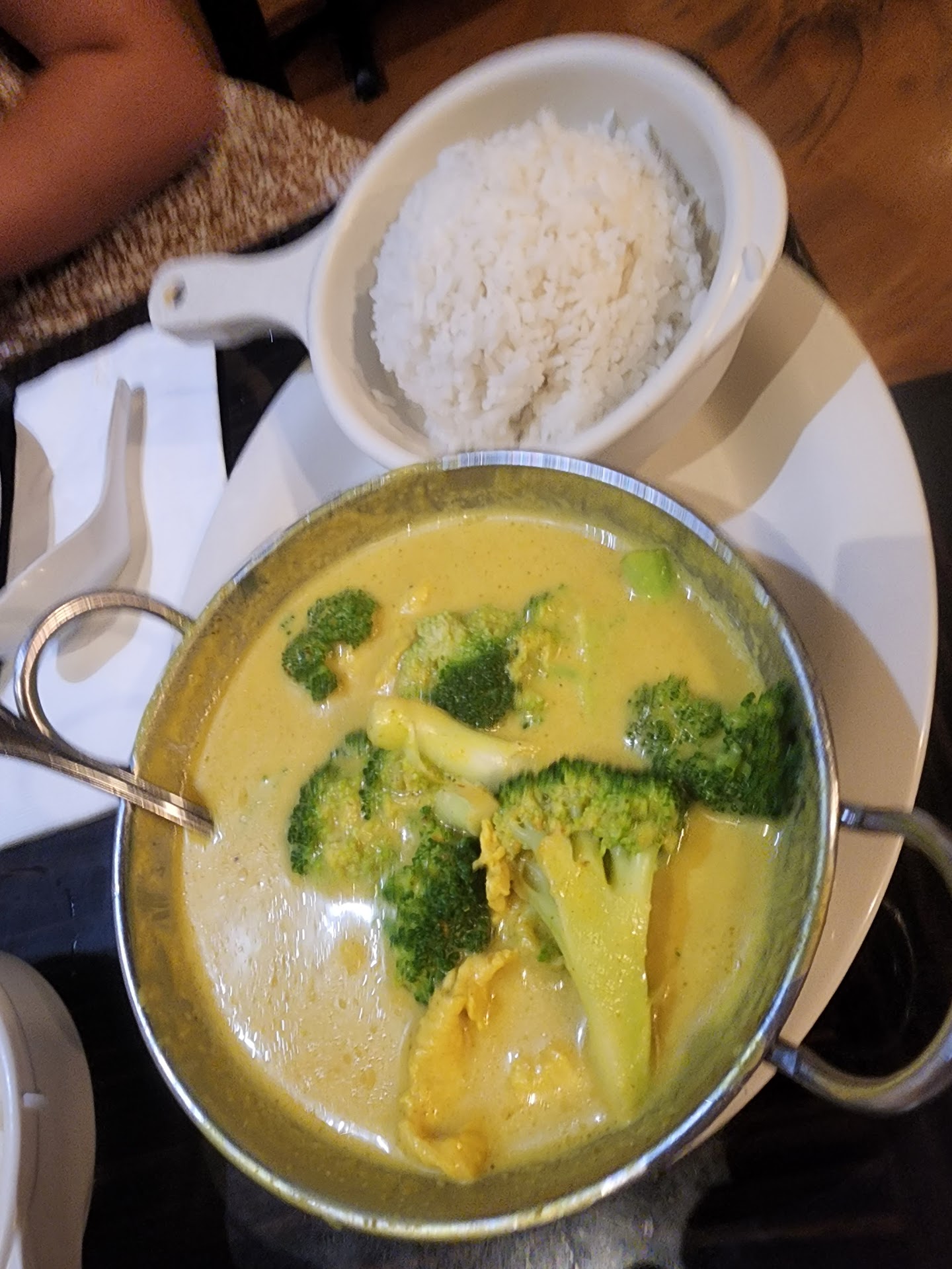 We wanted to make reservation time for 6 or 7 PM. We were told to come in at 5 PM, as this would be the time with the least amount of customers and would get the best service for our party of 8. The restaurant was 25% full. But with serving the other people, and trying to maintain take out. There was only one chef, and one server. I am not kidding. We got one dish every 5 to 10 minutes apart. By the time one person was nearly finishing the dish, the next dish was placed on the table. We were there nearly an hour before the final dish was placed. And it was cold. They had to remake it because this person waa a vegan. And they had used chicken. So the plate came back cold. They told us they would charge 50%. If I was restaurant owner I would have just given the dinner for free. It was barely touched. And was not taken home. They kept trying to push the rest of the plate as it take home, so it wouldn’t go to waste. On top of it, we had two separate families of four, and they put the bill as one bill, instead of two, so they can instantly charge 18% for extremely poor service. And to put icing on the cake, they charge a 3% surcharge if you use credit card to pay the bill. We try all kinds of Thai restaurants. And this one really doesn’t stand out in the least as far as flavor. We had to add hot sauce to just about everything to resemble Thai food. Do yourself a favor, and try somewhere else, and increase your odds of having a better...