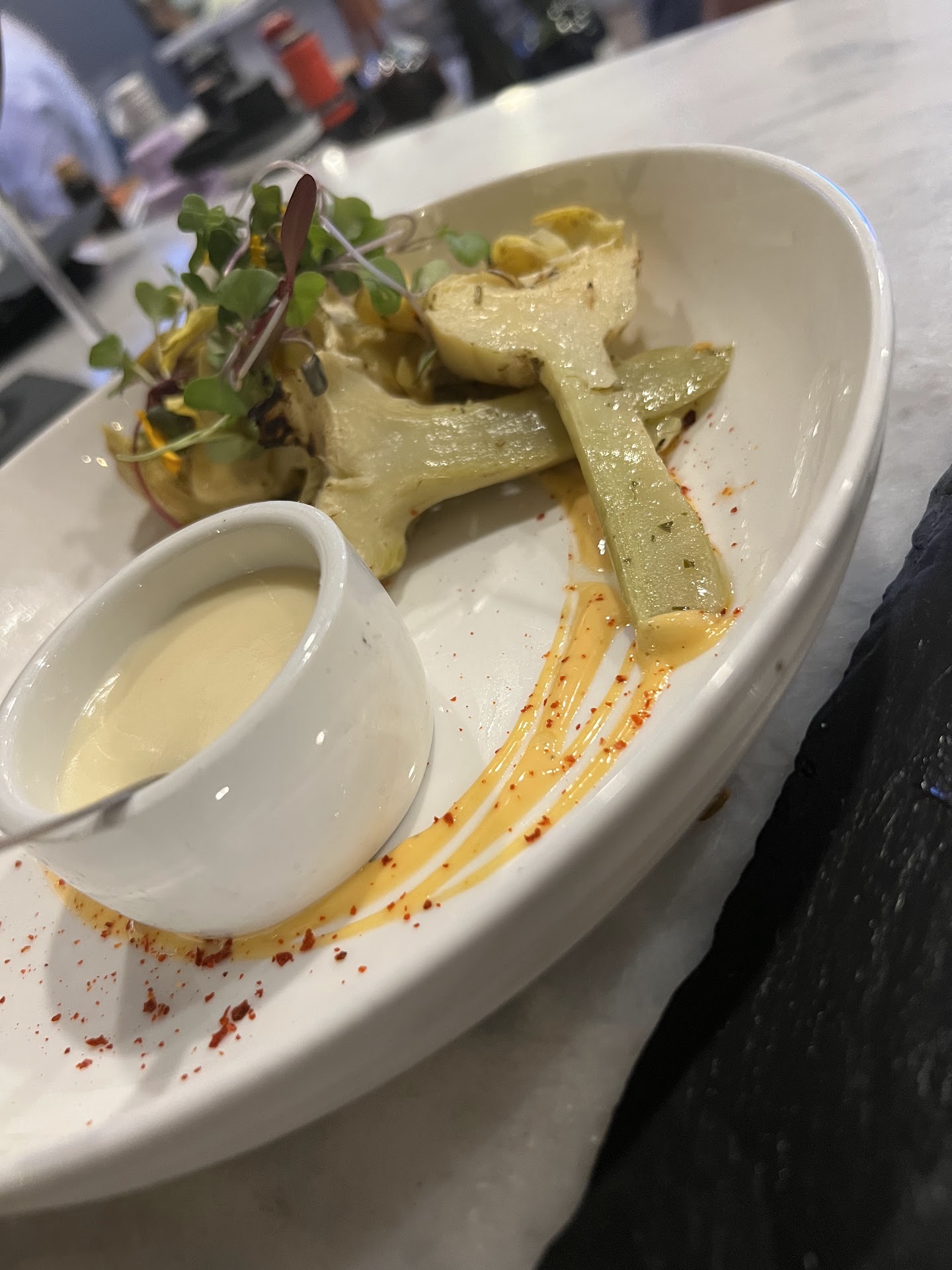 The atmosphere was fun and lively. Each staff member, especially the bartenders, seemed to be lost in their convos with their guest (which in my opinion is a great way to connect with each guest). We were very fortunate enough to have Chef Brent come to our table upon Janet’s requests as we told her we were planning a honeymoon in Greek but we didn’t know which island to visit. Turns out Chef Brent lived in Greece for many years. Let me just tell you, folks!! He was so happy to talk about the different must go places in Greece. It was so fun talking to thee chef and him sharing our excitement about the great food and culture we are about to experience.