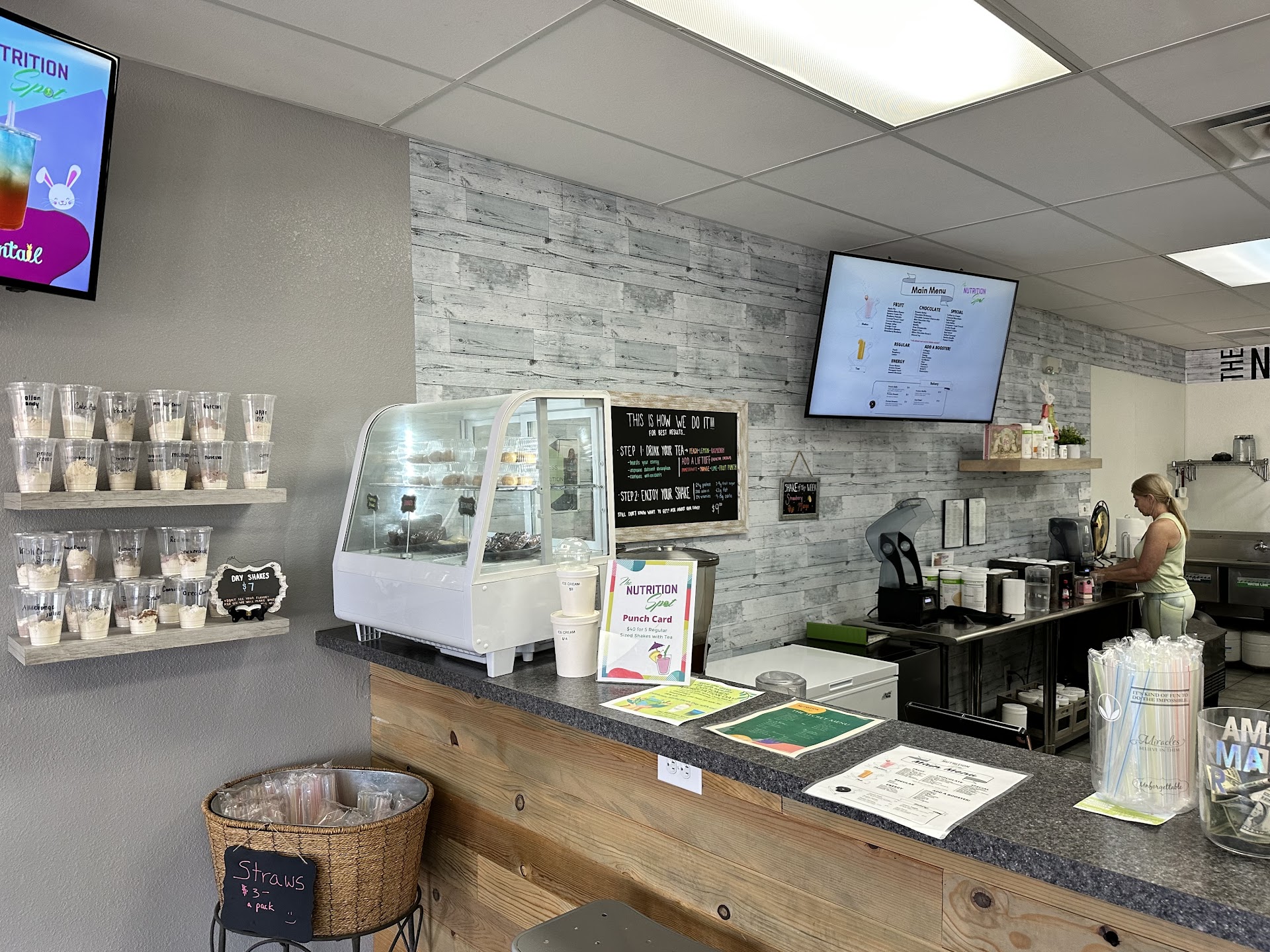 Read moreLooking for something light to eat after yoga, I wandered into the Nutrition Spot. The shop was very clean with a friendly, inviting vibe. The owner was warm and sincere, asking questions about what I liked and offered many suggestions of protein shakes and energy teas. My choice of raspberry tea was flavorful and refreshing and the chocolate peanut butter protein shake smooth, rich and delicious! I've frequented other Herbalife shops but hands down, the Nutrition Spot consistently serves quality products every time! I have become a regular and drive a distance from my home, passing other shops, to come here! Bravo, Nutrition Spot for serving a consistent product with a comfortable atmosphere and super friendly staff!!...