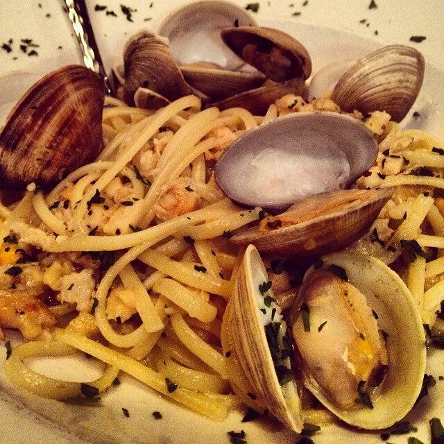 The highlights? Oh, where to start. The salmon ravioli in a vibrant cream sauce was a revelation—plump pockets of pasta bursting with sweet, tender salmon, nestled in a silky orange-hued broth flecked with chives and a sprinkle of microgreens. Each bite was a luxurious hug, balancing brininess with creamy elegance. We couldn't resist the pan-seared salmon over handmade pappardelle, where the fish's crispy herb crust gave way to flaky perfection, swimming in a lemony beurre blanc alongside charred lemon, asparagus, and artichokes. It was fresh, zesty, and utterly refined. For the pasta lovers at the table, the rigatoni sausage delivered waves of comfort—al dente tubes coated in a slow-simmered meat sauce that sang of tradition, topped with a blizzard of Parmigiano-Reggiano. And the eggplant parmigiana? Layers of golden-fried slices, gooey mozzarella, and San Marzano tomatoes, garnished with basil and olives—a vegetarian masterpiece that even carnivores devoured.