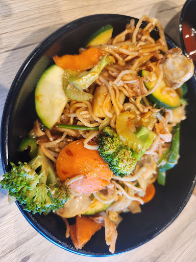 Read moreUnique concept. The place is clean. Pay at the counter when you walk in. Create your own meal by choosing from a very large assortment of proteins, vegetables, noodles, spices, and sauces. Then, have your meal cooked in front of you on a grill. I think this place only cooks one meal at a time, but it has two grills. You can fill your one bowl as high as you possibly can and they will allow the leftovers to go for .$50. I would recommend that first timers buy the all you can eat for a few dollars more and learn your perfect dish through trial and error. You cannot take food to go if you get the all you can eat. It will take several trips to learn the system and your tastes and preferences. A bad sauce or a sauce that is too spicy could ruin your entire bowl. They have staff helping you find and mix your sauce if you like. It is fun but a little overwhelming. The meal comes with self-serve, all you can eat, soup, white rice, brown rice, wantons, and a few other items. The wanton soup was solid. The meal comes with a fountain drink for an okay selection of beverages The chefs were friendly. A solid, tasty meal that could be made pretty healthy. This place had the freshest looking ingredients of any Mongolian grill place...