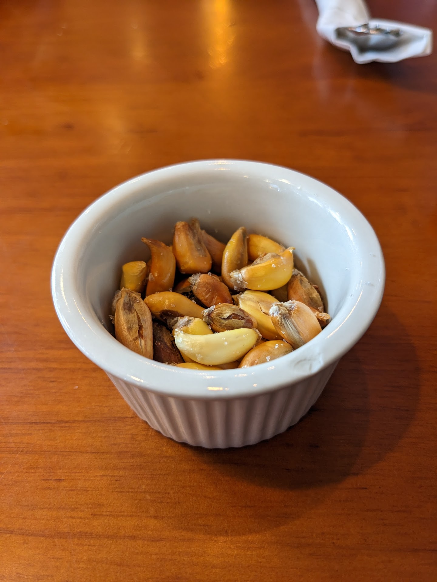 They start you off with a complementary snack of some kind of air fried corn while you wait for your food. He ordered the pork fried rice. The pork was delightfully tender and juicy, and they cut it into good size pieces without it being too large to scoop.