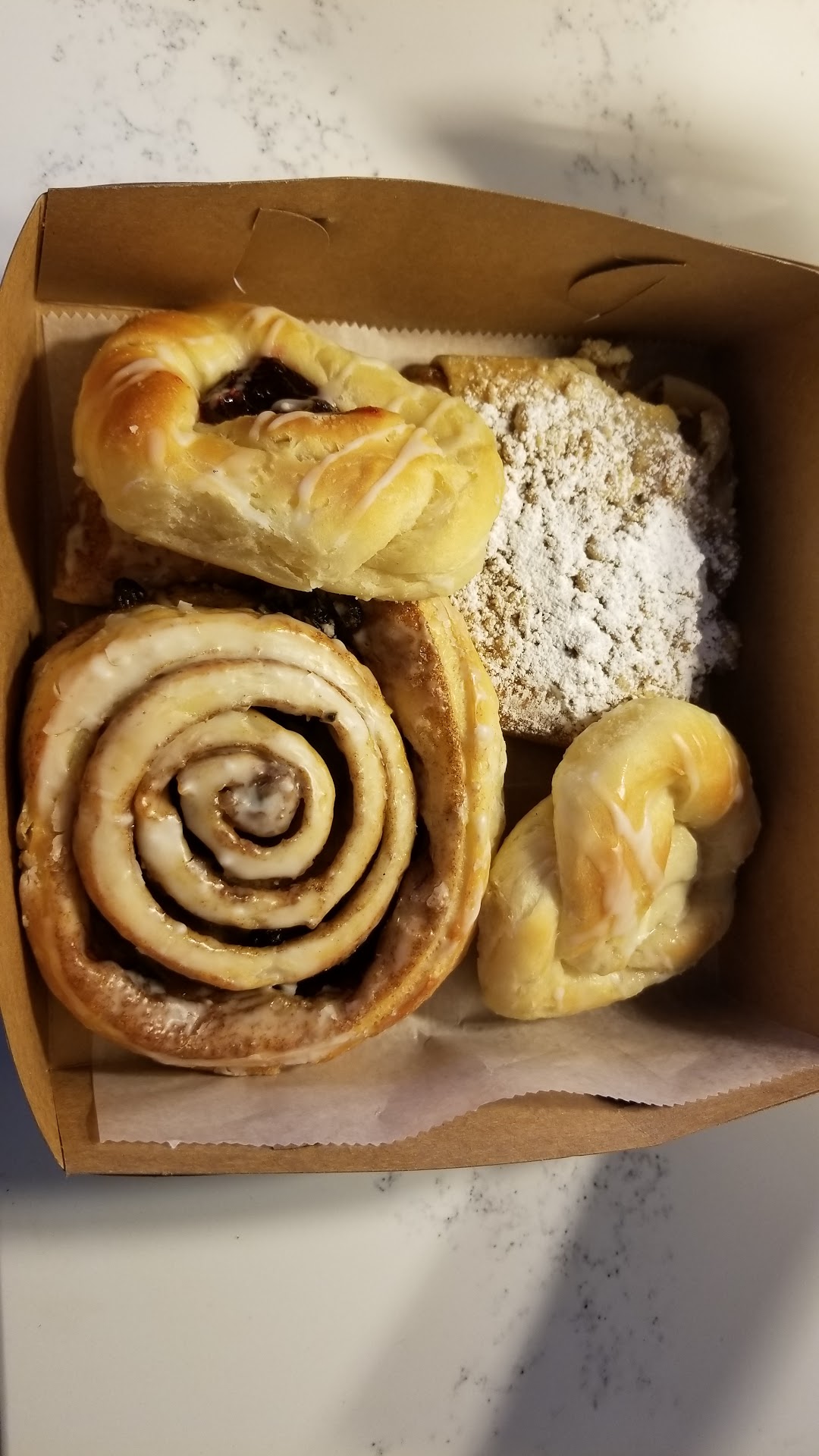 I had bought danishes, for my dad and a cinnamon raisin bun for myself. Honestly, the difference in freshness was astonishing. If you're looking for a new bakery wish fresh items go to this place. Things that are not out you can order ahead of time. I do wish they had better hours but it is no big deal!!! This place is great and has great quality items and definitely seem to really care about how costumers like they're items due to the way everything is baked for you and that they obviously keep freshness and costumer satisfaction in mind!!!