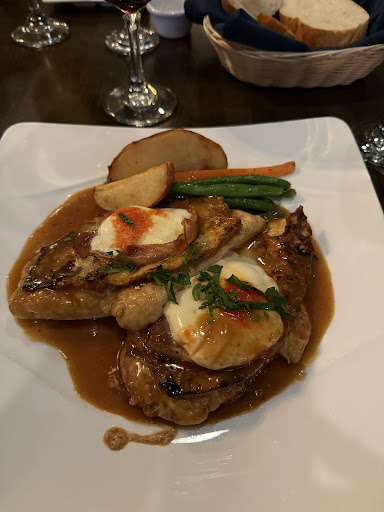 I started with the Lobster Bisque, which was smooth, creamy, and full of rich, buttery flavor. You can taste the freshness in every bite. For my entrée, I had the Pollo San Pietro — a perfectly cooked breast of chicken topped with Prosciutto di Parma, eggplant, sweet peas, and fresh mozzarella, all brought together with a tomato demi sauce. It was an absolute standout — the flavors blended beautifully, and every detail was spot-on.