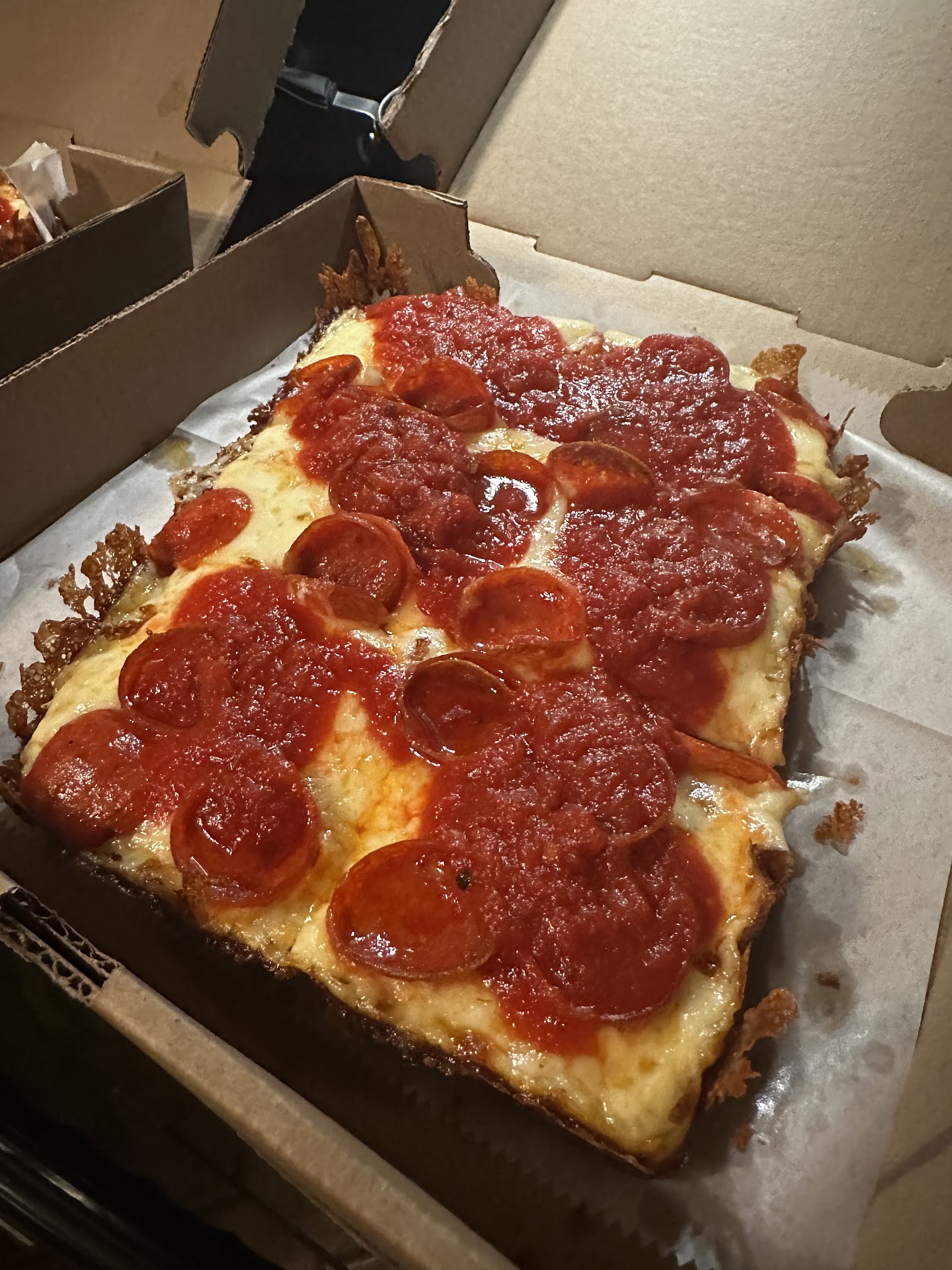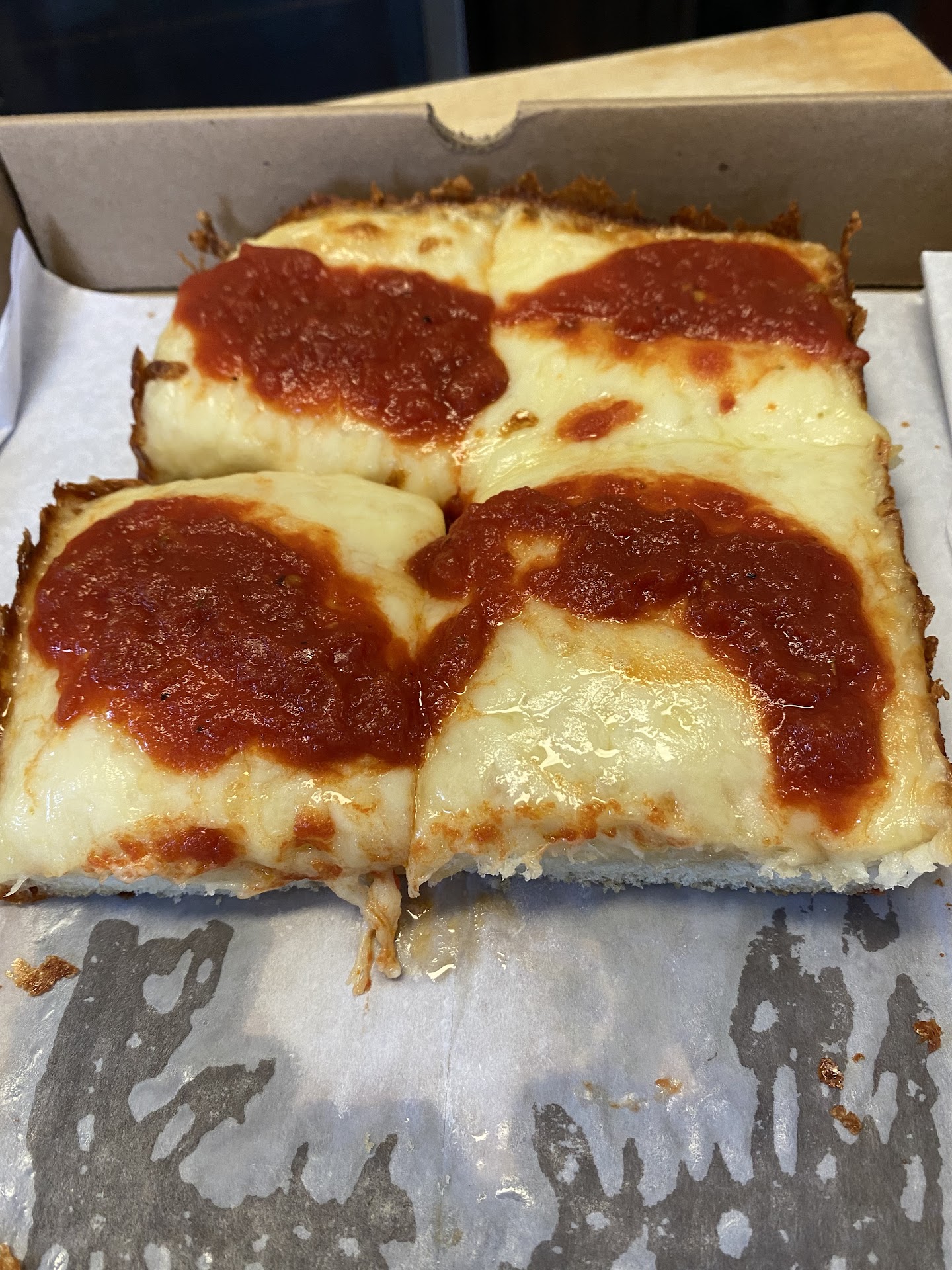 This place is really great! I ordered the Detroit pizza and the mild garlic wing bites, and everything was delicious. The pizza crust was nice and crunchy, and the sauce had a nice sweetness to it. The wing bites were made from good quality chicken, and they were spicier than I expected, but for me, that was a positive thing. The staff was really great as well. One thing to note is they are cash only which was slightly disappointing but when I was there picking up my order it appears that they do accept Venmo as payment there was a QR venmo scan code on the counter so next time I'll have to try that. Either way, I would highly recommend this...