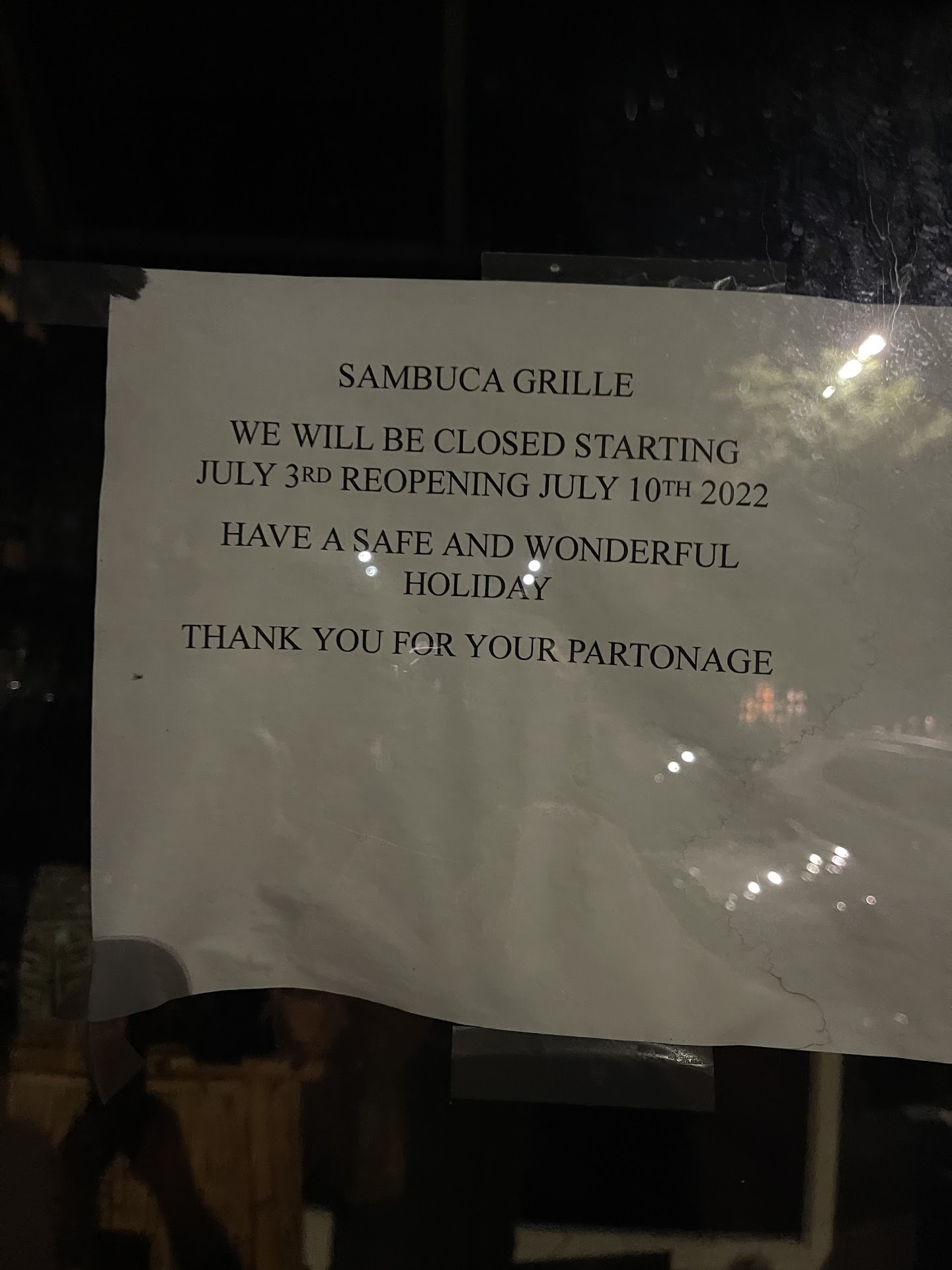 Read moreBEWARE: DO NOT TRUST YOUR SPECIAL OCCASION TO SAMBUCA GRILLE IN SCRANTON PA! Terrible experience due to unprofessionalism of this restaurant! So, what happened? On June 10, I used OpenTable to make a special reservation for my wife’s birthday on Saturday July 10. I reserved a full month ahead as I wanted this to be special and to take no chances. I indicated it was a birthday and added comments that I wanted to make it extra special. On Friday, July 9, I received the usual computer generated email from OpenTable asking me to confirm that I was going to be there for my reservation the following day. I immediately confirmed through OpenTable. Also, that same day I called the restaurant and left a voicemail confirming personally and again indicating that this was a very special occasion. I did not want to leave anything to chance. My wife and I arrived at the restaurant 20 minutes ahead of the reservation time. To my total shock and embarrassment I was met with a closed restaurant and a sign on the door stating they are closed July 3 through July 10 and wishing everyone a nice vacation! So there we were abandoned by Sambuca Grille on my wife’s birthday, a Saturday night, with no dinner reservation or place to go. The restaurant did not have the common decency to adjust its OpenTable settings to indicate they were closed, to reach out and inform me well in advance that they were closed, or to return its voicemails. This is the height of unprofessionalism and a lack of any concern whatsoever for their customers. To add insult to injury, OpenTable sent me my dining confirmation credits as if they were open and the reservation was honored! The restaurant is supposedly open as per its sign - and no one has called me to apologize or explain. I caution anyone who is reading this not to trust Sambuca Grille with your special occasion as they take reservations without honoring them. I have since discovered that there are much, much better restaurant options around the area - which will be the subject of a separate review. Sambuca Grille is dated, tired and worn out as obviously is it ownership and management. Avoid...