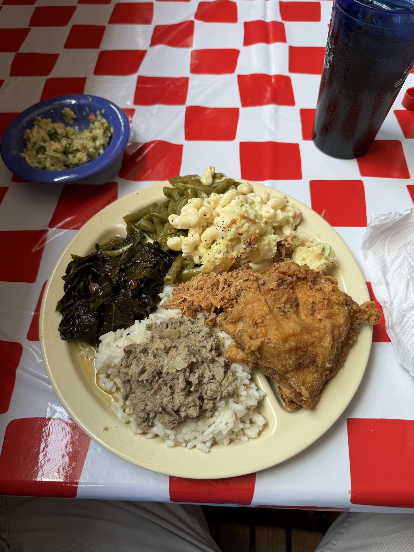 Just left this restaurant. The 2 stars is for the cleanliness, despite the old moldy scent in there. What restaurant doesn’t accept cards? I mean even some churches take cards. Anyway, we paid. The presentation of the food was nice. However, the taste was nothing to write home about. The green beans and corn were salty. The rice was cold. The grits were cold. The eggs were cold. The chicken was cold too. The bolonga was burnt. The sausage was also burnt. The bacon on the bar was flimsy like it needed to go back on the grill for a few more mins. The waitress in our area stood at a table and talked all of 20 mins while dirty tables were sitting around. When we were midway through our meal she comes to the table and asked if we needed refills. It was obvious none of the tables were important to her. We had a bad experience in the past here but decided to give this place another chance. Nothing has changed. We drove from Florence but it was a waste of a drive and money. Save yourself some time and drive to Woodstone BBQ in Florence. You won’t be disappointed and still hungry like we...