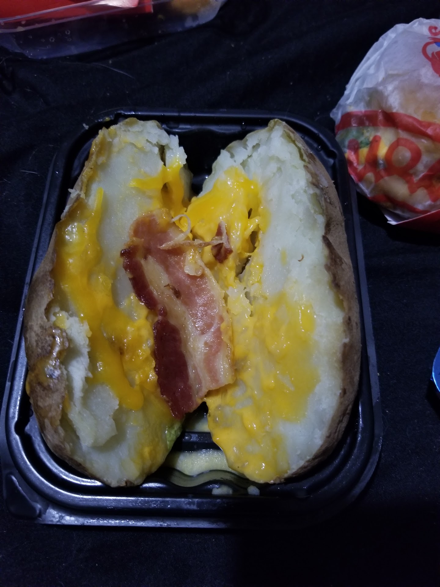 Read moreGOT OVER CHARGED FOR 2 ITEMS ON TOP OF IT. So I decided to go to this Wendy's and it took me over 45 mins total. To get checked out and also waited on I spent over $55 on my entire order for my family and I. Restaurant was completely disgusting with no clean tables. The soda and condiment stand was completely empty of small lids and no forks there was barely any napkins. Worst of all they screwed up my daughters order which I paid for. Then on top of that I waited for bags to take my food home. Never got them. Then I wanted to speak to the manager and all I got was, "what do you want me to do about it." And sorry. I thought was absolutely pathetic. So here are some of my items I order just got home and opened my food to this. That was supposed to be my baked potatoe with cheese and bacon asked for chives and sour cream and butter and never got it . Second picture jr bacon cheeseburger. Fries were supposed to be a medium and this is what I got. Next also asked for sweet and sour sauce and got ranch which I never wanted. 4 piece nugget I got 3 Pieces. Welcome to my dinner and I promise you this. I WILL NEVER GO THERE AGAIN. DONT GO THERE AND WASTE YOUR MONEY. BY THE WAY HORRENDOUS CUSTOMER SERVICE EVER. CALLING...