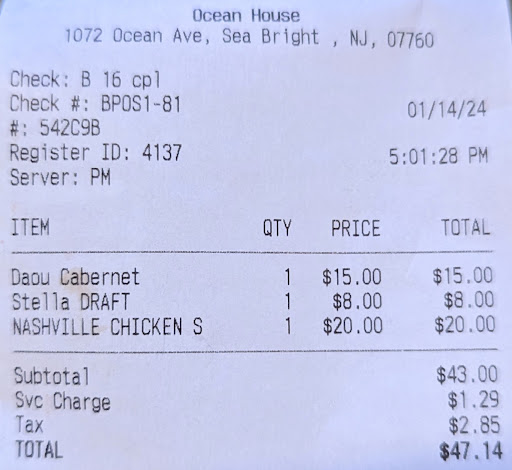 Read moreWe stopped in for a late lunch on a Sunday, sat at the bar and had a chicken sandwich. The food was good enough. We initially thought we might like to come back and try other things, but then we had âissuesâ with the check. The menu did state that there would be a charge for credit card transactions, so I told the bartender that I intended to pay with cash. He gave me the check, which despite stating I would pay cash, included a mysterious âService Feeâ. I told him I was just going to âback that out myselfâ since I was paying cash. I then notice that I was charged $20 for the chicken sandwich but on the menu it was listed as $19. I pointed this out, and the bartender said âthat is weirdâ, he was not offering to correct the price of my check even though I was emphasizing that âit was indeed weird that I chose the chicken based on the price on the menu that he presented to me, and then the bill had a higher price on itâ. Based on the deceptive billing and unwillingness to address discrepancies I experienced here, I would...