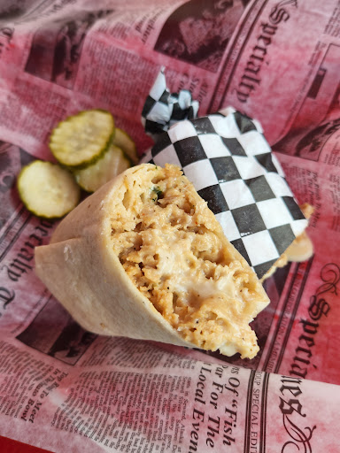 We got a wrap and large pizza. The wrap was ok. Wrapped up like a Russian nesting doll. The pizza was not very good. Very bready. Never been to a chuck-e-cheese before but this is what I would expect them to serve. We were going to eat in, but with the hot dining room and two children creeping up on 2 pm opted to take it to go.