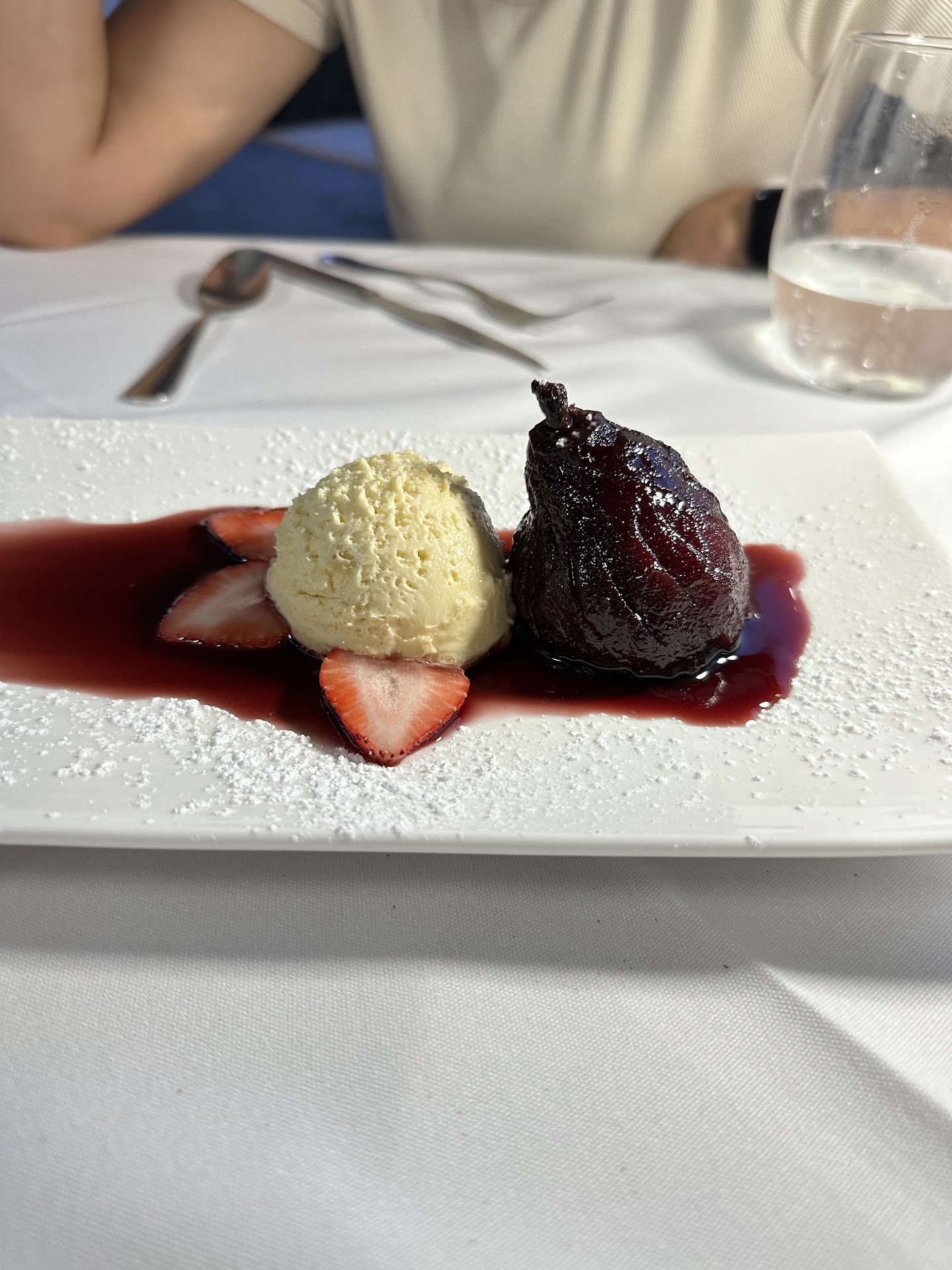 We were served by 2 very professional and accommodating gents. Service was unrushed while still being fully attentive. Never pushy. Drinks were always topped off. Menu and specials were presented clearly. Bread was a variety of 3 dinner rolls, piping hot and served with good quality olive oil, balsamic and shaved Parmesan for dipping.