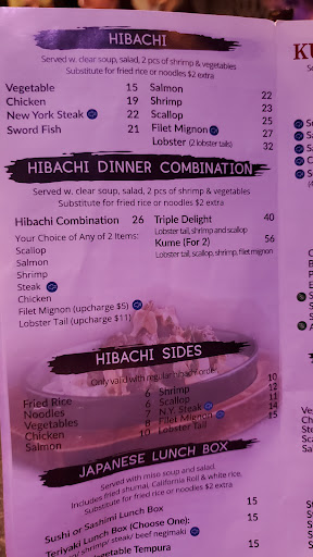Read moreI called ahead to ask if they had room for a large party at a hibachi station. They told me if we arrived within 20 minutes they would seat us. When we got there they brought us to the hibachi table and the server told us we had to order quickly because there would be a lot of other parties there tonight. We found that incredibly rude and it was also during the week at 5:15. The place was not busy at all - maybe 2 other parties at hibachi. That totally threw off the vibe for the evening. We read the menu and ordered several hibachi meals plus sushi rolls. On the menu it says fried rice comes with hibachi and it’s a $2 up charge for noodles. Most of us ordered noodles. We were charged $6 for fried rice and then some of us were charged $2 for noodles while others were charged $6 for the noodles. Our bill was $400. We paid it and left but we were not happy with our experience and the food was mediocre at best. To add to it, no other parties came into the hibachi area the entire time we were there so I am not sure why we were specifically asked to rush. We will not...